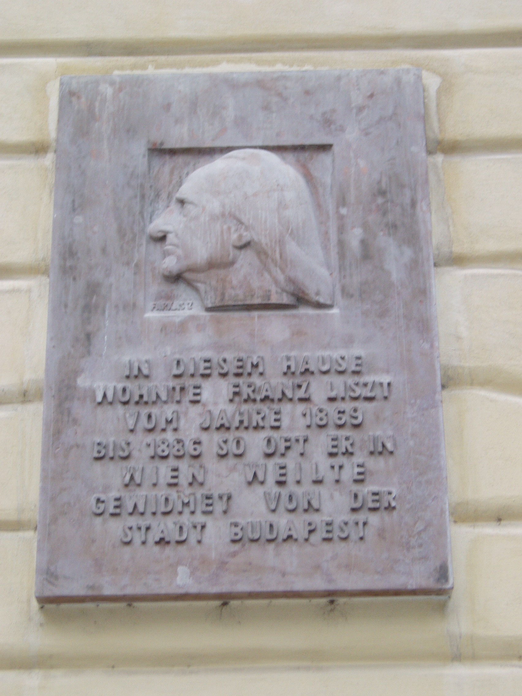 Nyilvános 1379 | 3151 | Freyung 6. Liszt-emléktábla | A Schottenhof épületegyüttesének a kert végében elhelyezett szárnyépülete homlokzatán a Farkas Zoltán alkotta dombormíves emléktáblán olvasható, hogy „e házban lakott Liszt Ferenc 1869-86 között, valahányszor Bécsben tartózkodott”. A táblát Budapest városa adományozta. |