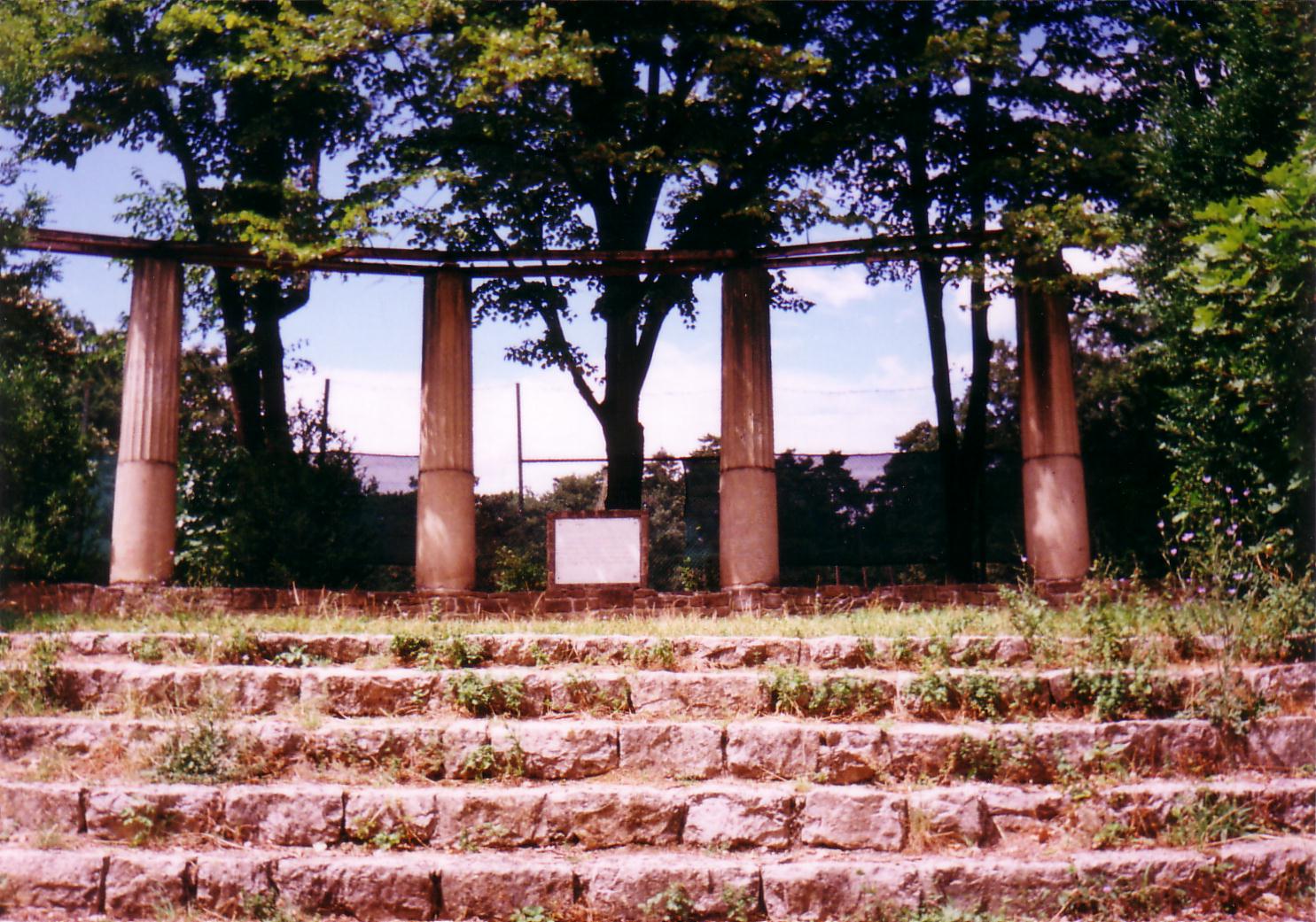Nyilvános 1397 | 5689 | Balatonfüred, Kiserdő | A Fenyvespark néven is ismert terület Balatonfüred központjában, a Gyógy tér mögött terül el. Az 1800-as évek közepétől az első világháborúig egymást követően két nyári színkör is működött itt. Bár Fürednek 1831-től volt állandó kőszínháza, az épület azonban nagyon levegőtlen volt, ezért nyári játszóhelyet is létesítettek. A legtöbbet Latabár Endre és Molnár György társulatai szerepeltek itt. 1958 őszén a Kiserdő egy emelkedésén, a teniszpályák szélén kialakított félkör alakú helyen, az egykor itt állt két egymást követő nyári színkör közvetlen közelében állították fel a reformkorban létesített füredi kőszínház megmaradt, annakidején Festetics László által adományozott oszlopait. A hat oszlop tetejét pergolaszerűen képezték ki, s a harmadik és negyedik oszlop között emléktáblát helyeztek el. A fénykép 2000 júliusában készült. Felh. irod.: Lipták Gábor – Zákonyi Ferenc: Balatonfüred. Veszprém, 1956 Bándi László: Emlékhelyek Veszprém megyében. Veszprém, 1996 |