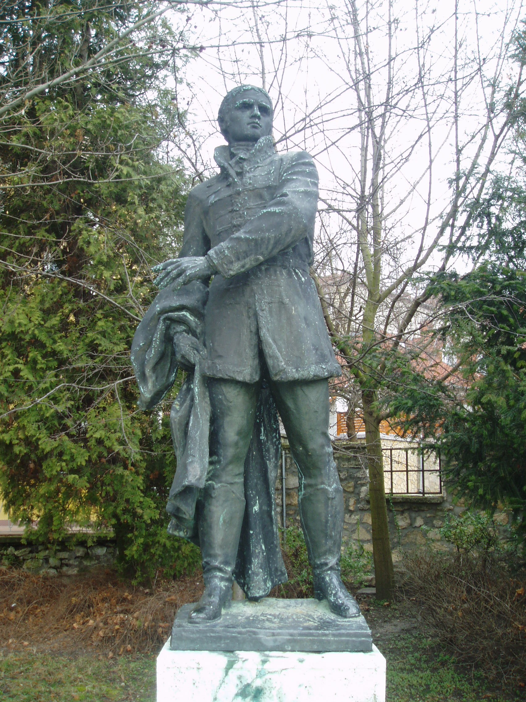 Nyilvános 1063 | 1980 | Tapolca, Batsányi tér: Batsányi János szobra | A Malom-tó melletti sétány északnyugati részén áll a Tapolcán született Batsányi János szobra, Segesdy György 1960-ban felavatott alkotása. Nem messze tőle felesége, Baumberg Gabriella költőnő mellszobra is látható. A fénykép 2007 februárjában készült. Felh. irod.: Látnivalók Veszprém megyében. Miskolc, Well-PRess, 2000 |