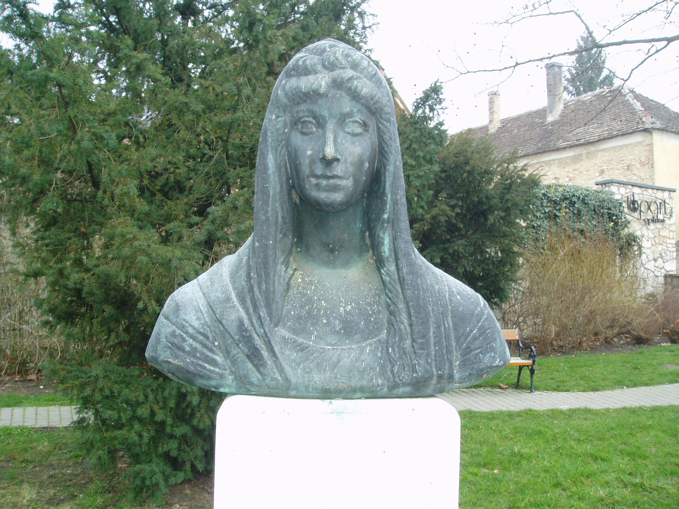 Nyilvános 1045 | 1991 | Tapolca, Batsányi tér: Baumberg Gabriella szobra | A Malom-tó melletti ún. Kis-tó nyugati partján helyezték el Batsányi Jánosné Baumberg Gabriella mellszobrát. Kocsis András szobrászművész alkotását 1964-ben avatták fel. A fénykép 2007 februárjában készült. Felh. irod.: Látnivalók Veszprém megyében. Miskolc, Well-PRess, 2000 |