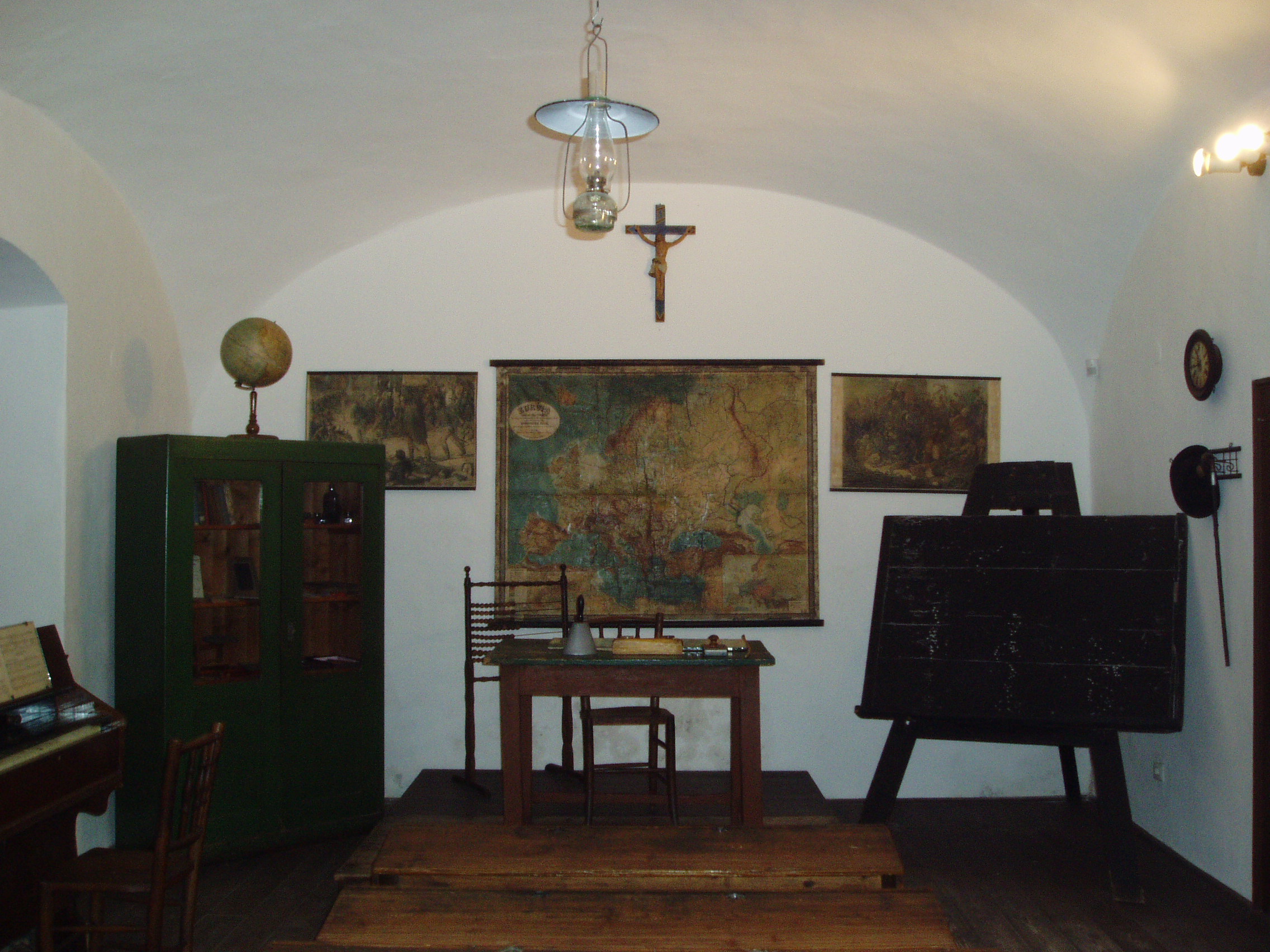 Nyilvános 1054 | 1805 | Tapolca: Templom domb 8. Múzeum | A múzeum épülete, az ún. Kántorház - a város védett építészeti emléke - Tapolca történelmi városközpontjában, a Malom-tó fölötti Templom dombon található. Ide járt elemi iskolába a város nagy szülötte, Batsányi János költő. Az épületben 1733-tól 1884-ig folyt az elemi iskolai oktatás. A múzeum iskolatörténeti kiállításának reprezentatív része a régi tanterem.. A maximális életszerűségre való törekvés jegyében a tanteremből szinte csak az iskolamester és a gyerekek hiányoznak. Az ajtótól jobbra fogasra akasztva a tanító úr kalapja és sétapálcája, a katedrán nyitva az 1900-as évek elejéről származó osztálykönyv. A falakon természettudományi, szám- és mennyiségtani szemléltető képek, s magyar történelmi események ábrái a tatárjárástól 1848/49-ig. A tanítói pulpitus mögött nagyméretű Európa-térkép függ, melyet Kogutowicz Manó készített 1893-ban. Az iskolai szekrényekbe bepillantva régi tankönyvek, palatáblák, tintatartók láthatók. Annakidején az ilyen tantermekben általában osztatlan oktatási szisztéma alapján foglalkozott a tanulókkal a tanító, a segédtanító és a pedellus. Az iskolatörténeti kiállítás következő termében tanszer- és szemléltetőeszköz-történeti tárlat tekinthető meg. A felvétel 2007 februárjában készült. Felh. irod.: Látnivalók Veszprém megyében. Miskolc, Well-PRess, 2000 Hangodi László: Múltbanéző - kiállításvezető a Tapolcai Városi Múzeum tárlataihoz. Tapolca, 2006 |