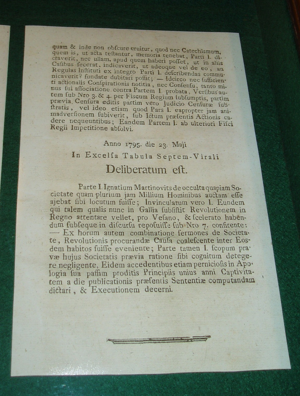 Nyilvános 1044 | 1702 | Tapolca: Templom domb 8. Múzeum | A múzeum épülete, az ún. Kántorház - a város védett építészeti emléke - Tapolca történelmi városközpontjában, a Malom-tó fölötti Templom dombon található. Ide járt elemi iskolába az 1770-es évek elején város nagy szülötte, Batsányi János költő. Részlet a Batsányi Emlékkiállításról: az 1795-ben Pesten latin nyelven kiadott, a Martinovics-összeesküvésben részt vevők vádiratából a Batsányira vonatkozó oldalak. A felvétel 2007 februárjában készült. Felh. irod.: Látnivalók Veszprém megyében. Miskolc, Well-PRess, 2000 Hangodi László: Múltbanéző - kiállításvezető a Tapolcai Városi Múzeum tárlataihoz. Tapolca, 2006 |