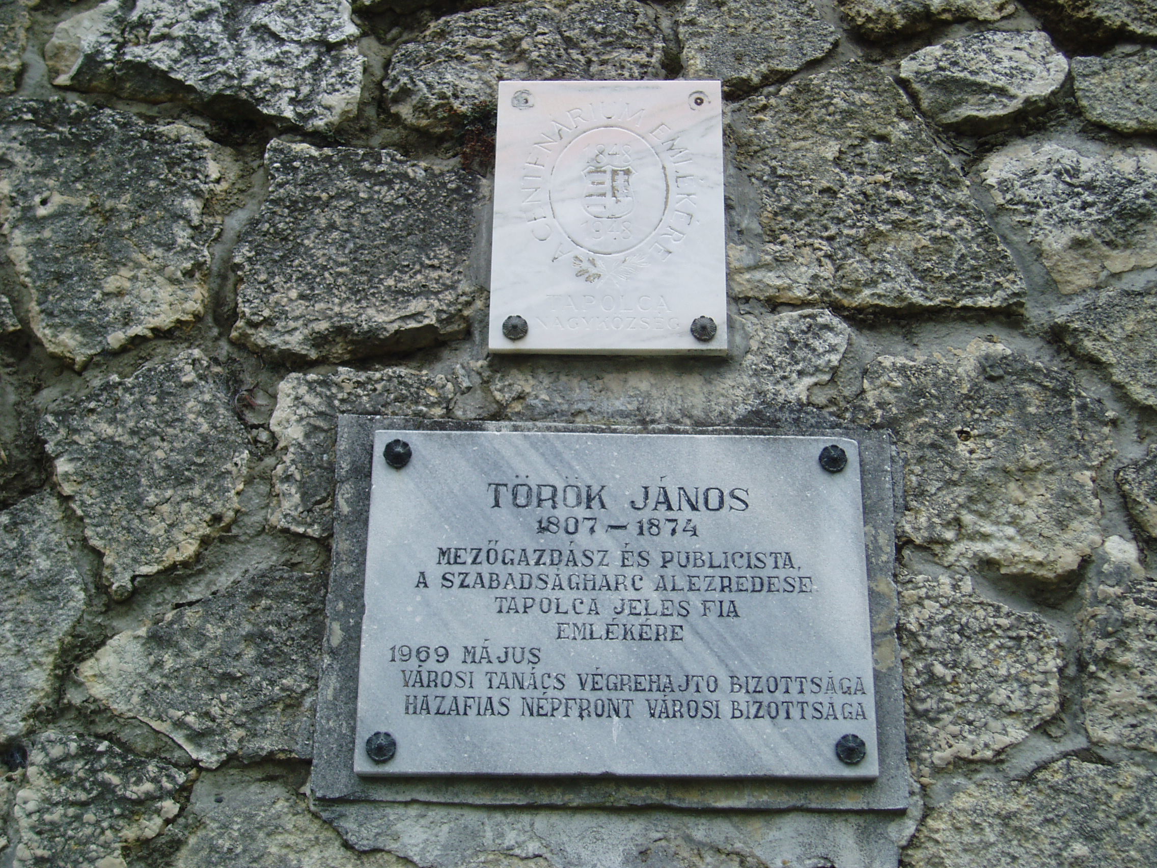Nyilvános 1021 | 1622 | Tapolca, Városi Panteonfal: Török János emléktáblája | A Malom–tó mögött álló magas kőfal a Városi Panteonfal, amelyen több neves, tapolcai kötődésű személyiségnek állítottak emléktáblát. Török János (1807-1874) mezőgazdász és publicista, az 1848/49-es szabadságharc alezredese Tapolcán született. 1969-ben felavatott emléktáblája a testvére, Török Antóniusz Flórián emlékét őrző tábla mellett látható. A felvétel 2007 februárjában készült. Felh. irod.: Bándi László: Emlékhelyek Veszprém megyében. Veszprém, 1996 www.tapolca.hu |