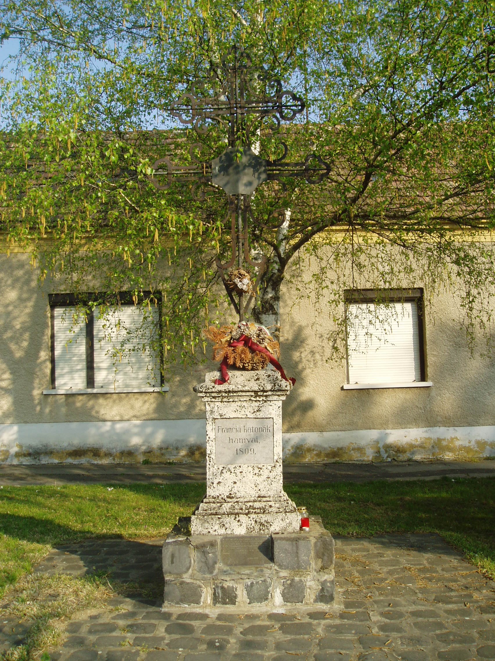 Nyilvános 1102 | 2026 | Pápa, Anna tér: Francia kereszt | Az Anna tér az egykori Alsóváros településközpontja. A tér dombján álló Szent Anna kápolna 1875-ben épült. A közelében található ún. Francia kereszt a napóleoni háború francia halottainak egykori tömegsírja felett áll. Pápát 1809. június 1. és július 6. között megszállva tartották a franciák. A hátrahagyott, majd később idehozott sebesültek ápolásáról a városnak és a megyének kellett gondoskodni. Egyes források szerint több, mint 5000 sebesültet ápoltak a városban, akik közül sokan belehaltak sérüléseikbe. Őket itt, az Anna téren temették el. Hamvaik a temető felszámolása után az Alsóvárosi temetőbe kerültek a kettős vaskereszttel együtt, amelyet 1986-ban állítottak vissza eredeti helyére. A fénykép 2007 áprilisában készült. Felh. irod.: Németh Adél - Szabó Lajos: Pápa. Bp. Panoráma, 1989 |
