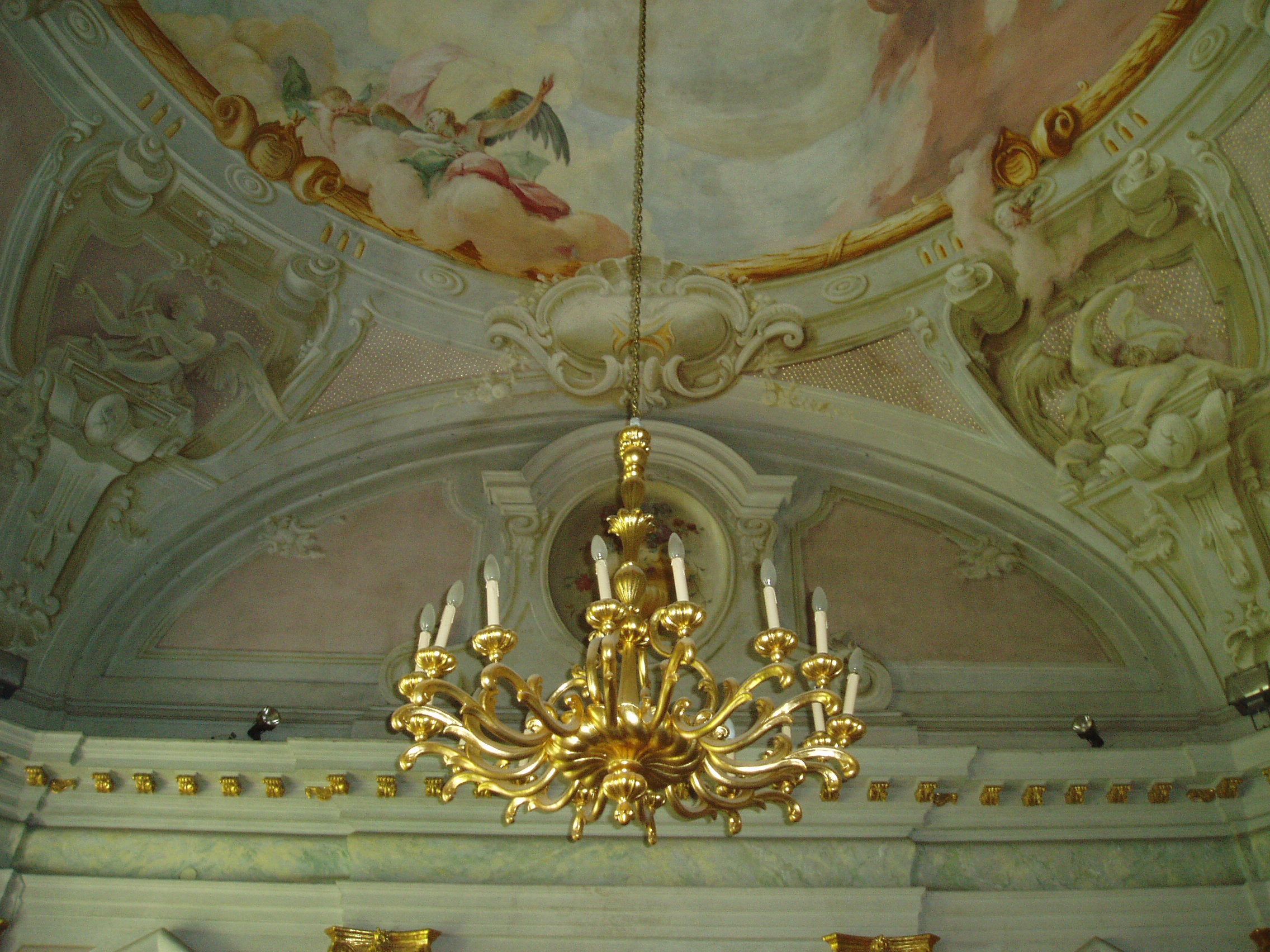 Nyilvános 1074 | 2695 | Pápa, Fő tér 1-3. Esterházy-kastély | A barokk kastély a korábban itt állott végvár helyére épült, részben annak alapfalai, kövei felhasználásával. A régi várat az 1740-es évektől Esterházy Ferenc (1683–1754) tárnokmester kezdte átalakítani Franz Anton Pilgram tervei alapján. A barokk várkastély kialakítása 1784-re fejeződött be Esterházy Ferenc fia, Eszterházy Károly egri püspök idejében Fellner Jakab, majd Grossmann József vezetésével. Az U alakú, egyemeletes épület a versailles-i palota nyomán elterjedt francia kastélytípus képviselője. Az épület keleti szárnyának emeletén volt a kastély kápolnája. Az 1988/89-ben végzett restaurálás eredményeképpen ma újra megcsodálható a helyiség eredeti architektúrája és Joseph Ignaz Mildorfer 1750 körül festett mennyezetképe, amely Krisztus mennybemenetelét ábrázolja. A kápolnában, amelynek példaszerű felújításáért a város 1990-ben Europa Nostra díjat kapott, ma a Jókai Mór Városi Könyvtár olvasóterme működik. A fénykép 2007 áprilisában készült. Felh. irod.: Németh Adél - Szabó Lajos: Pápa. Bp. Panoráma, 1989 Pápa. Szerk. Sz. Farkas Aranka. Bp., Magyar Képek, 2000 |