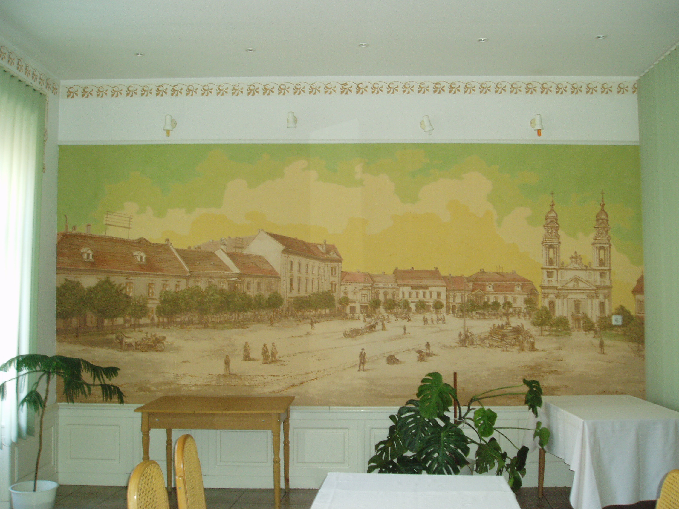 Nyilvános 1059 | 1797 | Pápa, Fő utca 15. Griff Szálló - a régi Pápa látképe | A Fő tér és a Fő utca sarkán áll a Griff Szálló copf stílusú, 1780–1790 között emelt, 1870 körül némileg átalakított épületegyüttese. Nevét az Esterházy család címerállatáról kapta. A Fő utca felőli oldalt Kapuszínnek is nevezik, ugyanis az emelet alatti részen nyílik Pápa sétálóutcájának, a Kossuth utcának a bejárata. A ház másik része a szálloda. A XIX. század folyamán a Griff volt a pápai társas élet központja. Itt alakult meg 1834-ben, Széchenyi István kezdeményezése nyomán — az országban az elsők között — a pápai kaszinó. E jeles eseménynek 1999-ben felavatott vörös márványtábla állít emléket. A Griff ma is meglévő patinás tánctermében — az ún. Tükörteremben — egykor színielőadások és megyebálok zajlottak. Testőrtiszt korában táncolt itt leendő feleségével, Szegedy Rózával Kisfaludy Sándor. Jónéhány évtizeddel később Mikszáth Kálmán volt jelen egy itt tartott táncmulatságon, s ez az élmény inspirálta A Noszty fiú esete Tóth Marival című regényének báli jelenetét. A XIX. század legelejétől 1881-ig, a pápai kőszínház (lásd: Pápa, Március 15. tér) megépítéséig a városba érkező különböző színtársulatok — kevés kivétellel — a Griff nagytermében tartották előadásaikat. A magyar színjátszás nagy egyéniségei közül játszott itt Déryné és Kántorné is. 1842-ben a színielőadások rendszeres látogatója volt két pápai diák, akik maguk is színészi–művészi vágyakat melengettek szívükben: Petőfi Sándor és Jókai Mór (akkor még Petrovics Sándor és Jókay Móric). Petőfi már itt tapsolhatott későbbi jóbarátjának, Egressy Gábornak, aki nevezetes szerepeiben lépett fel a társulat vendégeként — többek között Hamletet és Lear királyt játszotta. A társulat vezető színésznője Szatmáryné Farkas Lujza volt, aki elbűvölte a kamasz Petőfit. Petőfi és Jókai tiszteletüket kívánták tenni a művésznőnél, akit azonban éppen egy társnőjével civakodva találtak a Griff folyosóján. Petőfi — kiábrándulva — ekkor írta meg Szín és való című költeményét, amellyel aztán két arany pályadíjat nyert. A teremben sok jeles hangversenyt is rendeztek. 1937-ben fellépett itt Bartók Béla is fiatal kamarapartnerével, Gertler Endre hegedűművésszel. E nevezetes koncert 60. évfordulóján, 1997-ben emlékhangversenyt rendeztek ugyanitt, melyen részt vett az akkor már 90 esztendős Gertler Endre is. Mindkét eseményről vörös márványtábla emlékezik meg a Tükörteremben. A fénykép 2007 áprilisában készült. Felh. irod.: Pápa. Szerk. Sz. Farkas Aranka. Bp., Magyar Képek, 2000. Németh Adél – Szabó Lajos: Pápa. Bp. Panoráma, 1989 Nádasdy Lajos: A pápai kőszínház története 1817–1931. Veszprém, 1981, Veszprém megyei Tanács www.kincsestar.radio.hu/harangok "A kényes úrfi s a rongyos baka". Tanulmányok két halhatatlan pápai diákról. Pápa, Pápai Református Gyűjtemények, 2001 |