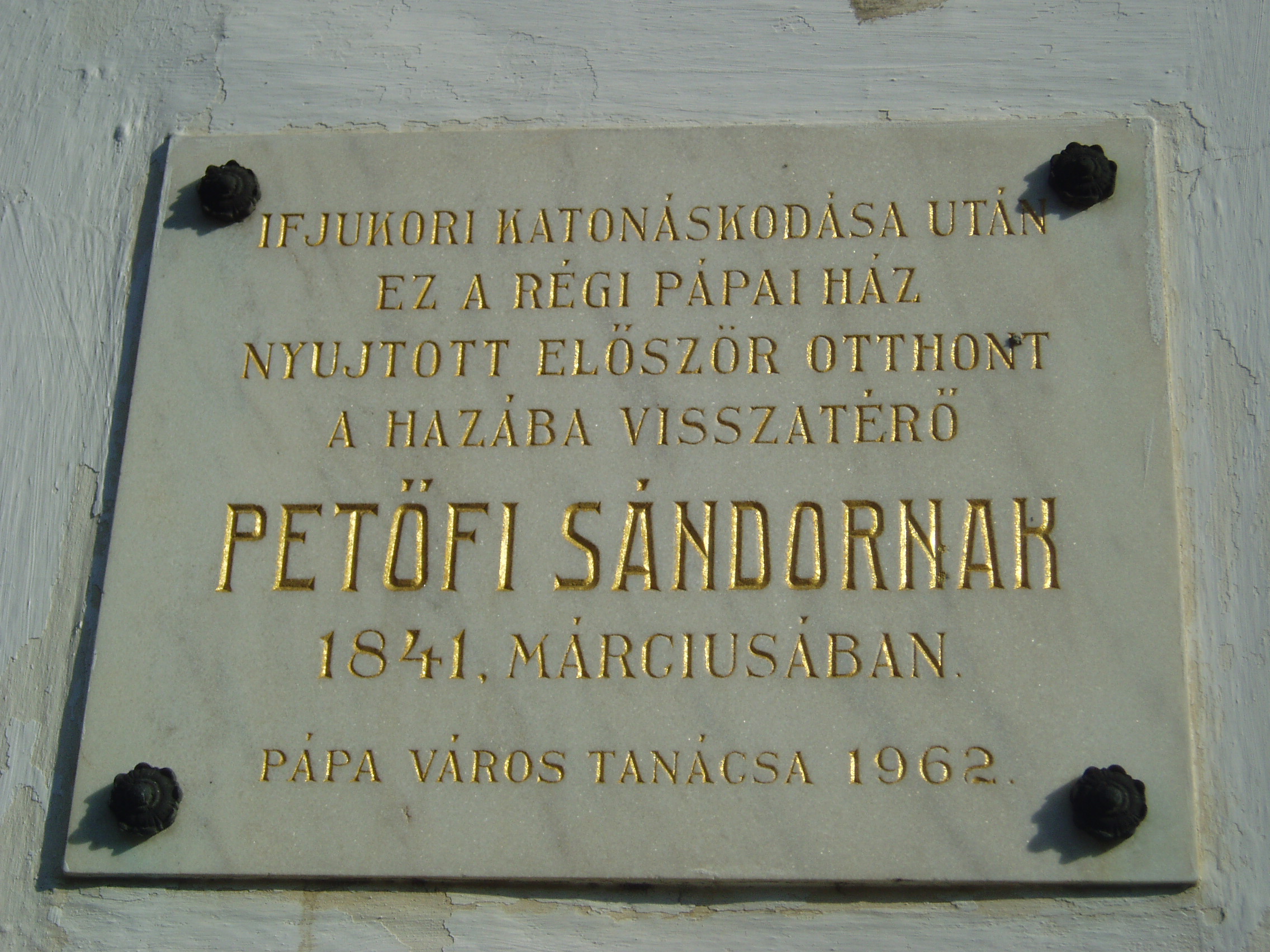 Nyilvános 1047 | 1613 | Pápa, Gyurácz Ferenc utca 18. | Mint a homlokzaton elhelyezett emléktáblán is olvasható, ebben a kis házban lelt először otthonra Pápán Petőfi Sándor 1841 márciusában. Petőfi - akkor még Petrovics - Sándor akkor szerelt le a kis híján katasztrófával végződő katonai szolgálatból, s reménytelen helyzetben volt: iskoláit félbehagyta, apja kitagadta. Ekkor ment Pápára, mert tudta, hogy unokatestvére, Orlai Petrich Soma az ottani kollégiumban tanul. Akkor ebben a kis házban egy Kis Gábor nevű diák is volt koszton-kvártélyon, s mivel Orlai Petrich még nem ért haza az iskolából, a háziasszony őt kérte meg, hogy vigye szobájába Petőfit, aki iránt külseje miatt bizalmatlan volt. Kis Gábor később így emlékezett: "Elképzelhetni, milyen lehetett a sors üldözte, ágról szakadt isten-katonája, az ő megviselt uniformisában. És ne vegye senki rossz néven, ha a rendet annyira kedvelő háziasszony ugy nyilatkozott előttem. Dehogy hitte, de ki is hitte volna, hogy az a katona egykor a Dalaim és Magyarország annyi dalainak szerzője. Bementem Petőfiért, ott ült a háziasszony szobájában egy széken, a 'sárgapitykés, zöldhajtókás közlegény': mellette a padlón ellapulva hevert az üres vászontarisznya, a bot az ágynak támaszkodott görcsös fejével ... Magam bemutatása rövid volt, mit is mondhattam volna sokat, a lábain céhláda nagyságu bakancsokban előttem álló Petőfit vendégemül meghívám, ő vette a botot és a tarisznyát s mentünk ... a mi szobánkba... Hazajött Orlay ... A legelső estét a mi szobánkban töltöttük; ... a barátság melegénél, mert borunk kevés volt, felmelegedett az elcsigázott, vézna alaku költő, csak hamar láng csapott ki homlokán, szavalt idegen költők műveiből, Horác ódáit egymásután mondta könyv nélkül..." Körülbelül három hétig tartózkodott itt Petőfi, amikor elhagyta Pápát, mert édesapjától megbocsátó levelet kapott. A fénykép 2007 áprilisában készült. Felh. irod.: Németh Adél - Szabó Lajos: Pápa. Bp. Panoráma, 1989 Petőfi emlékhelyek a Kérpát-medencében. Kiskőrös, 1996, Petőfi Sándor Társaság "A kényes úrfi s a rongyos baka". Tanulmányok két halhatatlan pápai diákról. Pápa, 2001, Pápai Református Gyűjtemények |