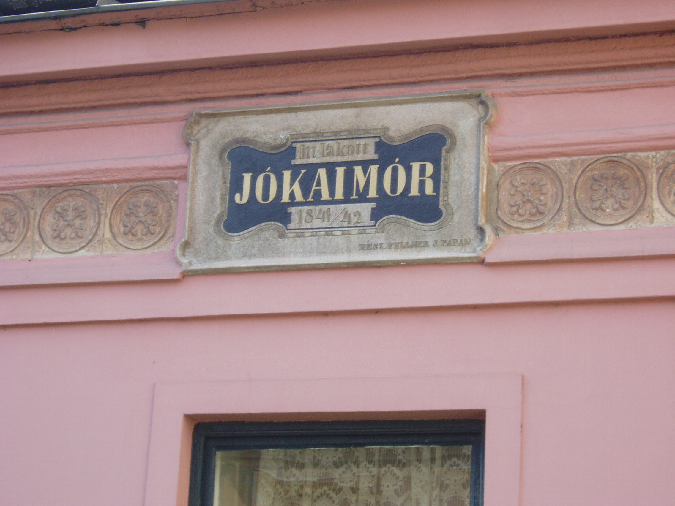 Nyilvános 1050 | 1894 | Pápa, Jókai utca 13. | Klasszicista stílusban, 1820 körül épült egyemeletes lakóház. Homlokzatán emléktábla jelzi, hogy pápai diák korában, 1841/42-ben itt lakott Jókai Mór. Jókai - akkor még Jókay - Mórt sógora, Vály Ferenc hozta Pápára 1841. aug. 21-én különbözeti vizsgát tenni, ami után a fiú a Kollégium (lásd: Pápa, Petőfi u. 13.) diákja lett. Nov. 1-jén költözött be bebbe a házba, Klára Mihály otthonába, kosztosdiákként. (Még idős kori levelében is emlegette a "derék" Klára Mariska főztjét.) Együtt lakott Kerkapoly Károly későbbi filozófiaprofesszorrel és pénzügyminiszterrel és egy Pap Dénes nevű iskolatársával. Az itt töltött időben Jókai jeles előmenetelű diák volt. Tanulmányai mellett portréfestéssel is foglalkozott. Visszavonult, szolíd életet élt, amivel táraitól kiérdemelte a "Jámbor" becenevet. Ebben gyerekkori betegségének, tüdő-problémáinak is része volt. Lakótársain kívül elsősorban Orlai Petrich Somával barátkozott. Petőfivel 1842-ben ismerkedett meg. Eltérő egyéniségük ellenére hamar jóban lettek, sok időt töltött Petőfiék szállásán (lásd: Pápa, Petőfi u. 11.), de igazi barátság csak a későbbi kecskeméti években alakult ki közöttük. Bár még elsősorban festőművésznek készült, de novellákat is írt; az egyikkel második díjat nyert 1842-ben (lásd: Pápa, Fő u. 17.). Itt töltött időszaka, a diákélet szokásai, jeles professzorai nagy hatást gyakoroltak életművére. Különösen sok pápai motívum lelhető fel az És mégis mozog a föld és az Egetvívó asszonyszív című regényeiben. A házat még Jókai életében, 1880-ban jelölték meg emléktáblával. A fénykép 2007 áprilisában készült. Felh. irod.: Németh Adél - Szabó Lajos: Pápa. Bp. Panoráma, 1989 Petőfi emlékhelyek a Kérpát-medencében. Kiskőrös, 1996, Petőfi Sándor Társaság "A kényes úrfi s a rongyos baka". Tanulmányok két halhatatlan pápai diákról. Pápa, 2001, Pápai Református Gyűjtemények |