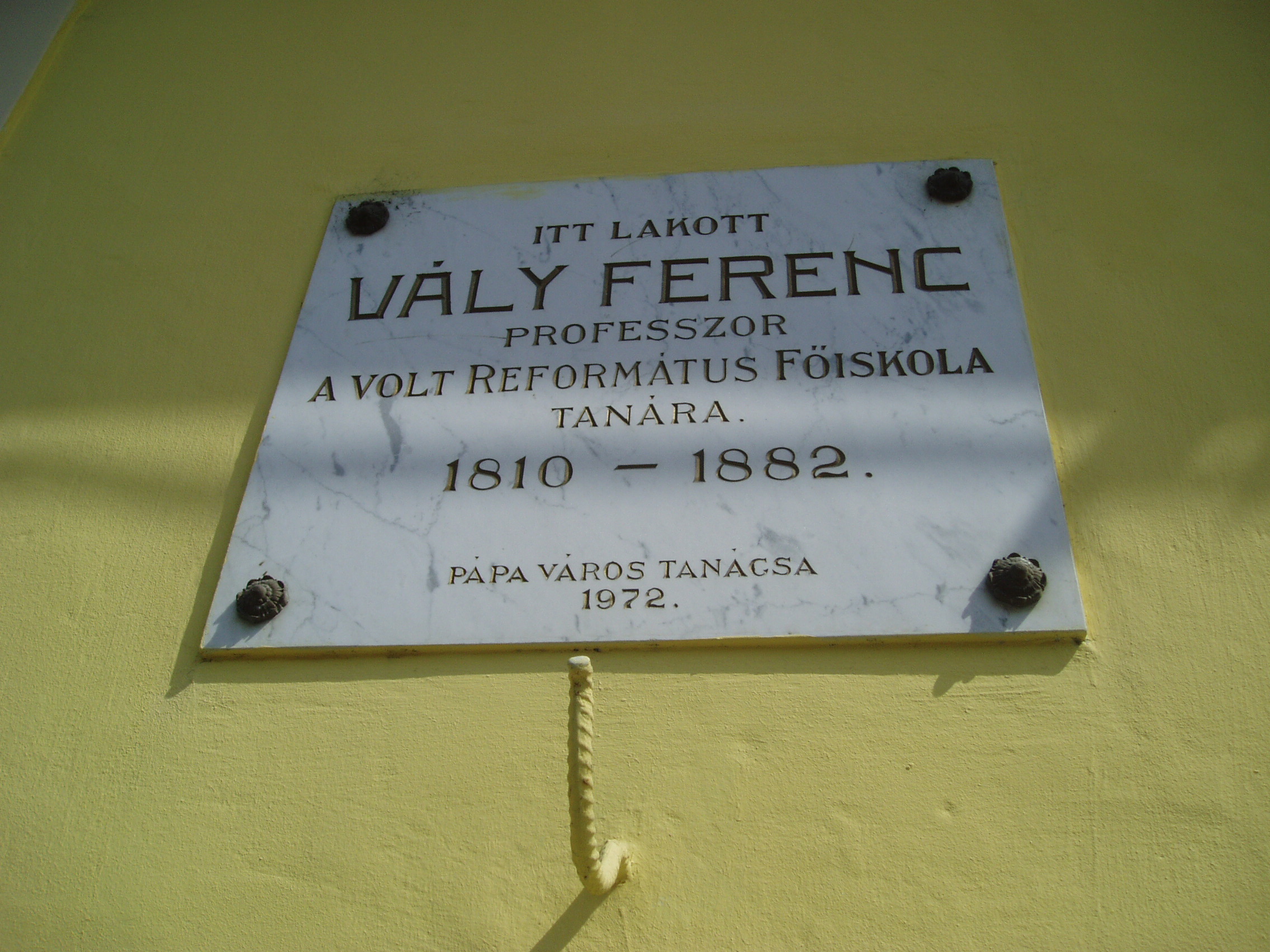 Nyilvános 1041 | 1645 | Pápa, Jókai utca 20. | Ez a kis ház volt Vály Ferenc főiskolai professzor lakóháza pápai évei alatt. Vály Ferenc (Magyarsiófok, 1810. szept. 30. – Pápa, 1882. dec. 13.) tanár, tankönyvíró. 1833-tól néhány évig tanító volt Pápán, de visszakerült Komáromba, ahol 1839-től a református gimnázium igazgatójaként működött. 1839-ben feleségül vette Jókay Esztert, Jókai Mór nővérét. A szabadságharc után, melyben tüzérként vett részt, telepedett le a család Pápán, ahol a református főiskola tanára és a tanítóképző igazgatója volt. Egy természetrajzi és egy kémiai tankönyve jelent meg. 1882-ben hunyt el, a pápai Alsóvárosi temetőben nyugszik (lásd: Pápa, Alsóvárosi temető: Vály Ferenc sírja). Felesége, Jókay Eszter 1816-ban született Komáromban. Számos cikket és visszaemlékezést írt a korabeli folyóiratokba, többek között forrásértékű adatokkal szolgált Jókai Mór gyermekkoráról. 1889. máj. 7-én hunyt el Pápán, férjével közös sírban nyugszik. Leányuk, az ebben a házban (is) nevelkedett Vály Mari Komáromban született 1840. nov. 17.-én. Férjének és gyermekének korai halála után Jókaiékhoz költözött a fővárosba, háztartásuk vezetésében segédkezett. Nagybátyja életét terjedelmes emlékiratban örökítette meg. Pápán hunyt el 1915. május 17-én, sírja szülei nyughelye mellett van (lásd: Pápa, Alsóvárosi temető: Vály Mari sírja). A fénykép 2007 áprilisában készült. Felh. irod.: Németh Adél - Szabó Lajos: Pápa. Bp. Panoráma, 1989 Veszprém megyei életrajzi lexikon. Veszprém, Veszprém Megyei Önkormányzat Közgyűlése, 1998 |