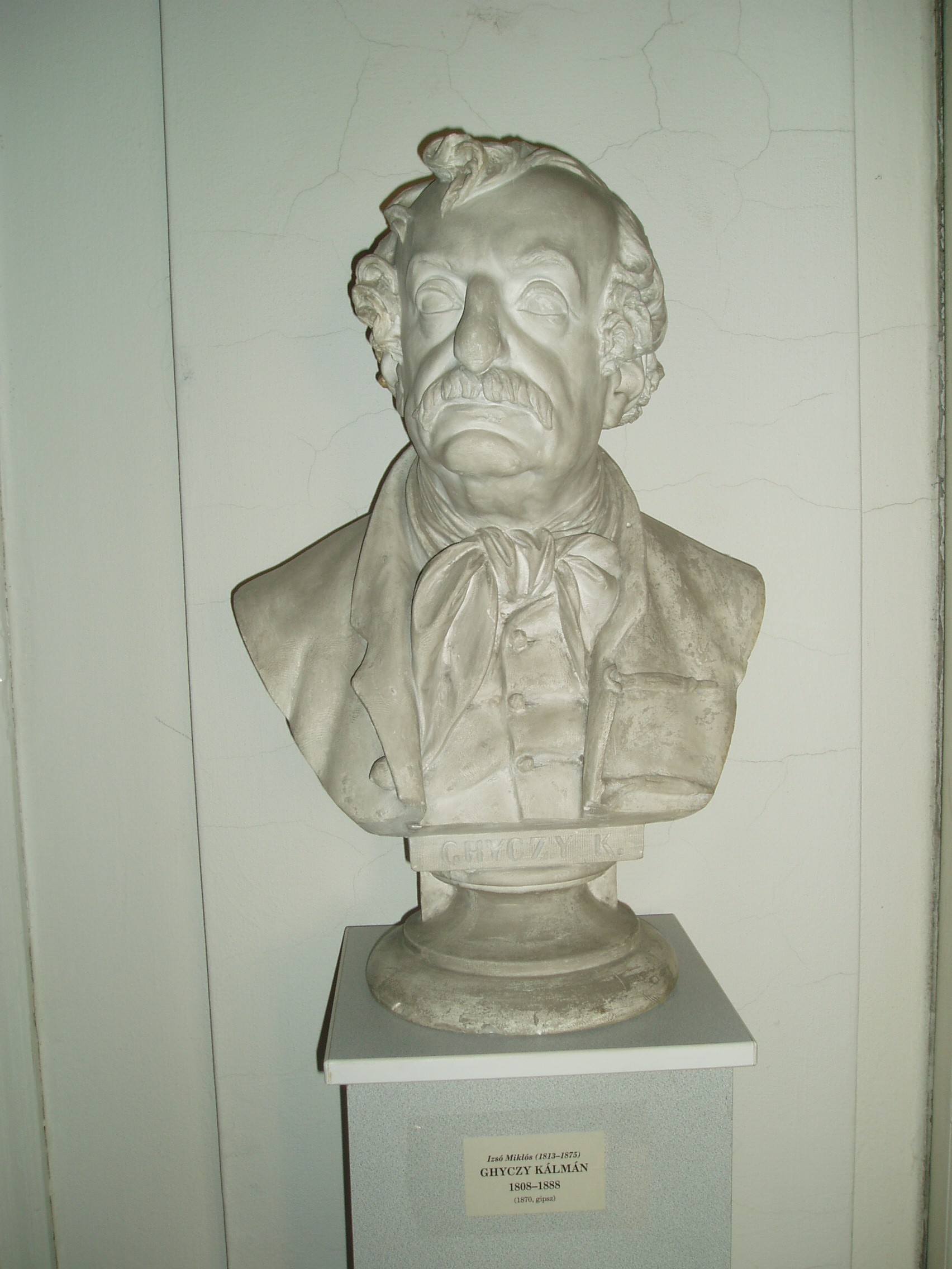 Nyilvános 1029 | 1781 | Pápa, Március 15. tér 9. Pápai Református Kollégium Gimnáziuma | A híres pápai Református Kollégium első épülete 1531 és 1752 között a mai Ruszek közben, a Lábasház épületének helyén állott. 1752-ben - Mária Terézia rendeletének következtében, amely megszüntette a szabad vallásgyakorlást - harminckét évig csak a közeli Adásztevelen működhetett. 1784-ben, II. József türelmi rendeletének köszönhetően térhetett vissza az iskola Pápára, s hamarosan felépült a ma Ókollégiumként ismert épület (lásd: Pápa, Petőfi u. 13.), amelyben 1794-ben indulhatott meg az oktatás. Az intézmény 1857-ig működött ott, ekkor átköltözött a Március 15. tér 13-15. számú házba, az ún. Nátus-ba, majd 1895-ben utolsó végleles helyére, ide, a Március 15. tér 9. számú monumentális új épületbe. A képen - a könyvtár előterében - Ghyczy Kálmán (1808-1888) jogtudós, pénzügyminiszter fehér márvány mellszobra látható, Izsó Miklós 1870-ben készült alkotása. A fénykép 2007 áprilisában készült. Felh. irod.: Németh Adél - Szabó Lajos: Pápa. Bp. Panoráma, 1989 http://refi-papa.hu |