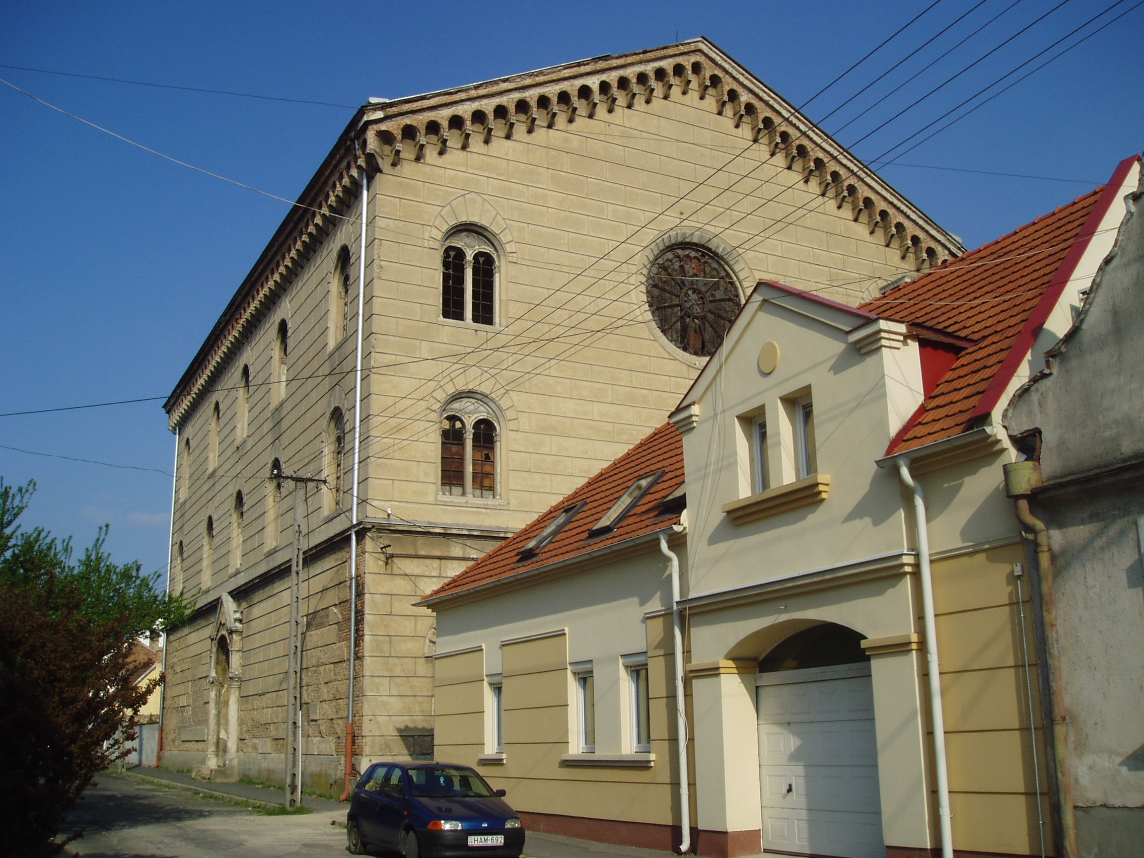 Nyilvános 1083 | 2954 | Pápa, Petőfi utca 21. Zsinagóga | A napjainkig eredeti formában fennmaradt zsinagóga építését 1844-ben kezdték el. A 398 m2 alapterületű, közel 20 méter magas épületet Löw Lipót rabbi szentelte fel 1846-ban. A főbejárat a vallási előírásoknak megfelelően a nyugati oldalon található. A zsinagóga puritán külső megjelenését csak a félköríves fülkékbe helyezett romantikus ikerablakok és a klasszicizáló oldalkijárat díszíti. A kétszintes karzatszerkezettel rendelkező, dekoratívan festett belső térben nyolcszáz férfi számára volt ülőhely. Az épület jelenleg (2007) rendkívül elhanyagolt állapotban van, felújításra vár. A fénykép 2007 áprilisában készült. Felh. irod.: Németh Adél - Szabó Lajos: Pápa. Bp. Panoráma, 1989 www.papa.hu |