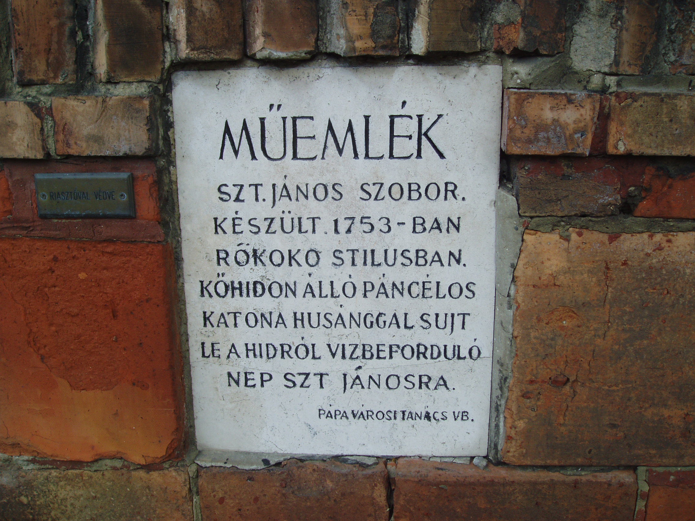 Nyilvános 1061 | 1722 | Pápa, Szent István út: Nepomuki Szent János szobra | A Várkertet határoló alacsony téglafal kerítés oldalában, az egykori vámházzal szemben áll a Nepomuki Szent Jánost ábrázoló rokokó stílusú kőszobor. 1755-ben készült, az akkori földesúr, Esterházy Károly faragtatta. Készítője azonos a Flórián szoboréval (lásd: Pápa, Flórián u.). Az átlagostól eltérően komponált szoborcsoport az Esterházy-címerrel díszített magas talapzaton áll. A talapzaton emelkedő kőhíd tövében puttók ülnek. A kőhídon álló páncélos katona husánggal sújt le a hídról a vízbe forduló Szent Jánosra. Nepomuki Szent János (csehül: Svatý Jan Nepomucký; Nepomuk /Csehország/, 1340 és 1350 között – Prága, 1393. március 20.) keresztény vértanú, Csehország védőszentje. Miután pappá szentelték, nemsokára prágai kanonok és érseki helyettes lett. IV. Vencel cseh király őt választotta gyóntatójául. Vencel gyanakodott feleségére és azt követelte Jánostól, hogy árulja el, mit gyónt a királyné. János a gyónási titok szentségére hivatkozva megtagadta a király kívánságát. A király azt is nehezményezte, hogy egy apátválasztást az ő tudta nélkül, mint érseki helyettes megerősített. Mindezért elfogatta, megkínoztatta és a Moldva folyóba dobatta Jánost. 1729-ben XIII. Benedek pápa avatta szentté. A fénykép 2007 áprilisában készült. Felh. irod.: Németh Adél - Szabó Lajos: Pápa. Bp. Panoráma, 1989 www.wikipedia.org |