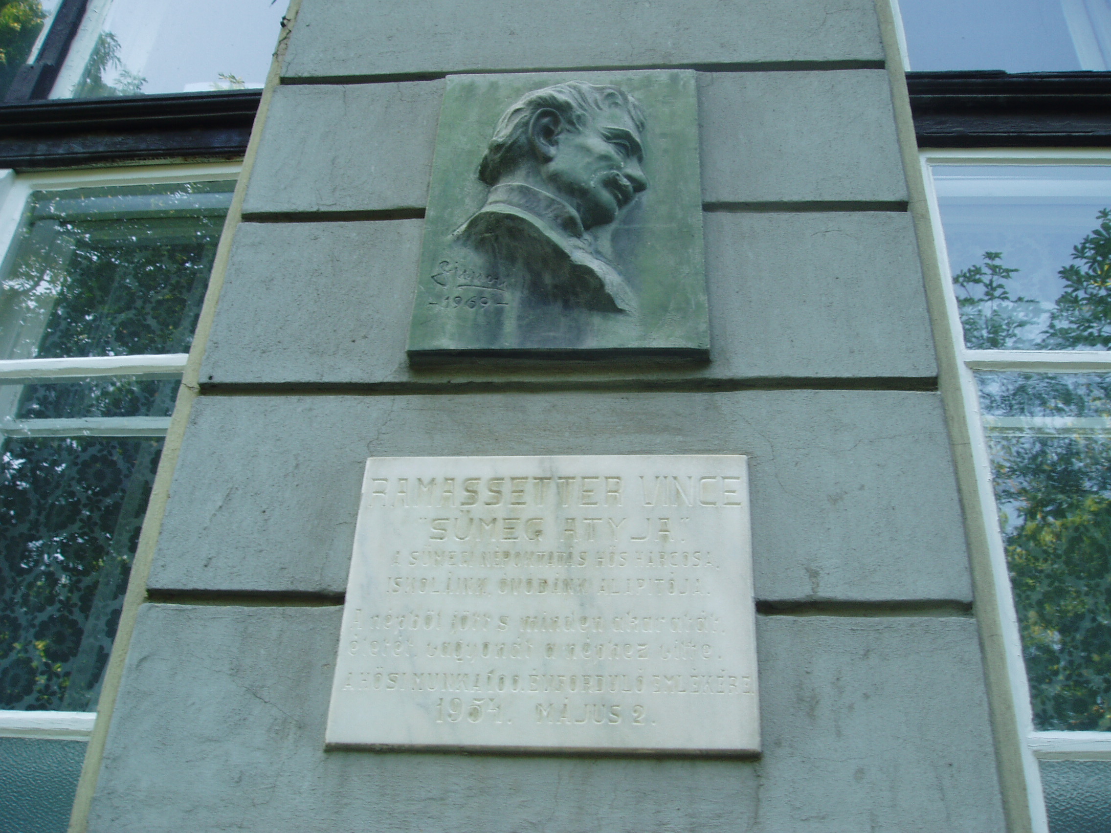 Nyilvános 998 | 1531 | Sümeg, Árpád utca 5. | A Kisfaludy-Rammassetter Iskola épületén 1954-ben felavatott márványtábla és Simon Béla 1969-ben készült portrédomborműve emlékeztet Sümeg legendás személyiségére, Rammassetter Vincére. "Sümeg atyja" emlékét a városban egészalakos szobor és több emléktábla is őrzi (lásd: Deák F. u. 8., Kossuth u. 13., Mártirok u. 1., Panteonfal, Rammassetter u. 10., Temető). A fénykép 2007 júniusában készült. |