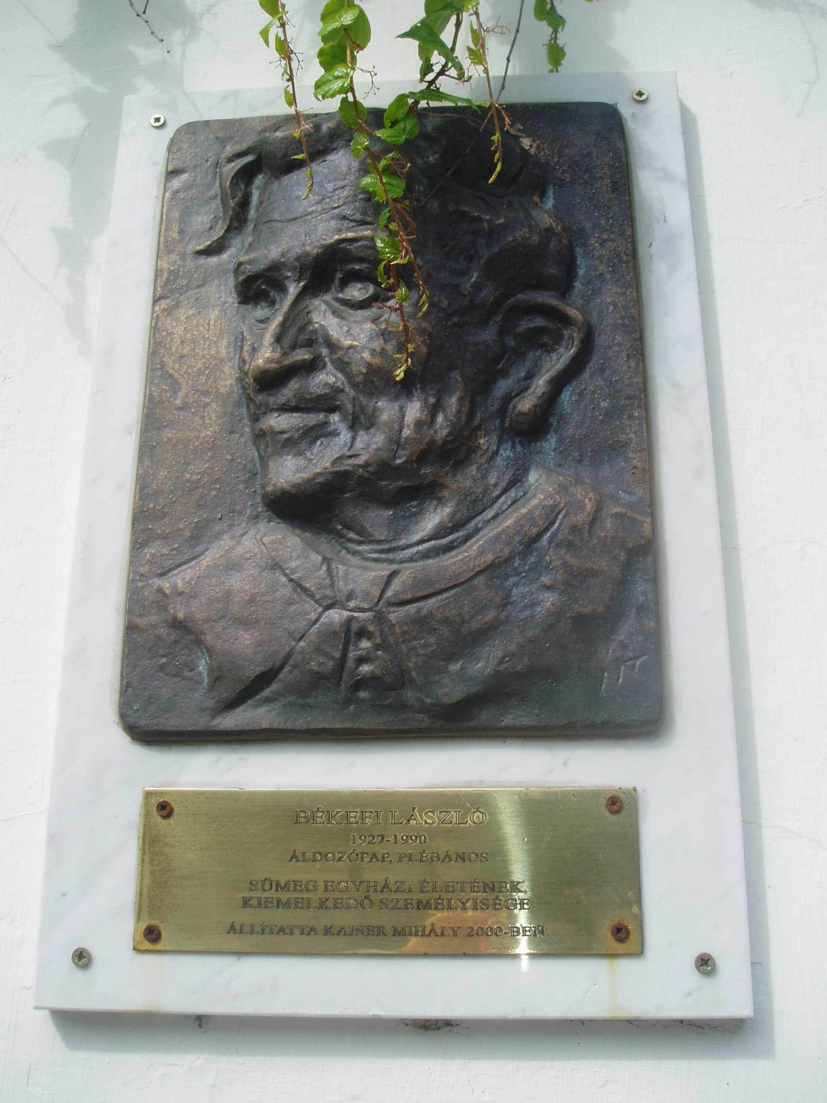 Nyilvános 1050 | 1913 | Sümeg, Panteonfal. Békefi László emléktáblája | A Kisfaludy téren, Kisfaludy Sándor szülőháza előtt alakították ki Sümeg Panteonfalát. A képen Békefi László emléktáblája látható. Békefi László (Celldömölk, 1927. júl. 30. – Sümeg, 1990. márc. 13.) prépost. 1952-ben, Veszprémben szentelték pappá. Két évig Buzsákon, egy esztendeig Búcsúszentlászlón, 1955–1957 között Sümegen káplán. Veszprémben püspöki helytartó, püspöki titkár, majd templomigazgató. 1961-től Sümegen plébános, 1963 után a kerület vezető esperese, 1973-tól prépost. A város mindkét templomát felújíttatta, a plébániatemplom központi fűtést kapott. A Máltai Lovagrend segítségével munkálkodott a várbeli kápolna felújításán. Tagja volt a városi Hazafias Népfrontbizottságnak, a Városvédő- és Szépítő Egyesületnek. 1994-ben – posztumusz – Sümeg város díszpolgára címet kapta. A fénykép 2007 júniusában készült. Felh. irod.: Koppány Tibor - Kozák Károly: Sümeg útikalauz. Veszprém, Idegenforgalmi Hivatal, 1965 Látnivalók Veszprém megyében. Miskolc, Well-PRess, 2004 Veszprém megyei életrajzi lexikon. Veszprém, Veszprém Megyei Önkormányzat Közgyűlése, 1998 |
