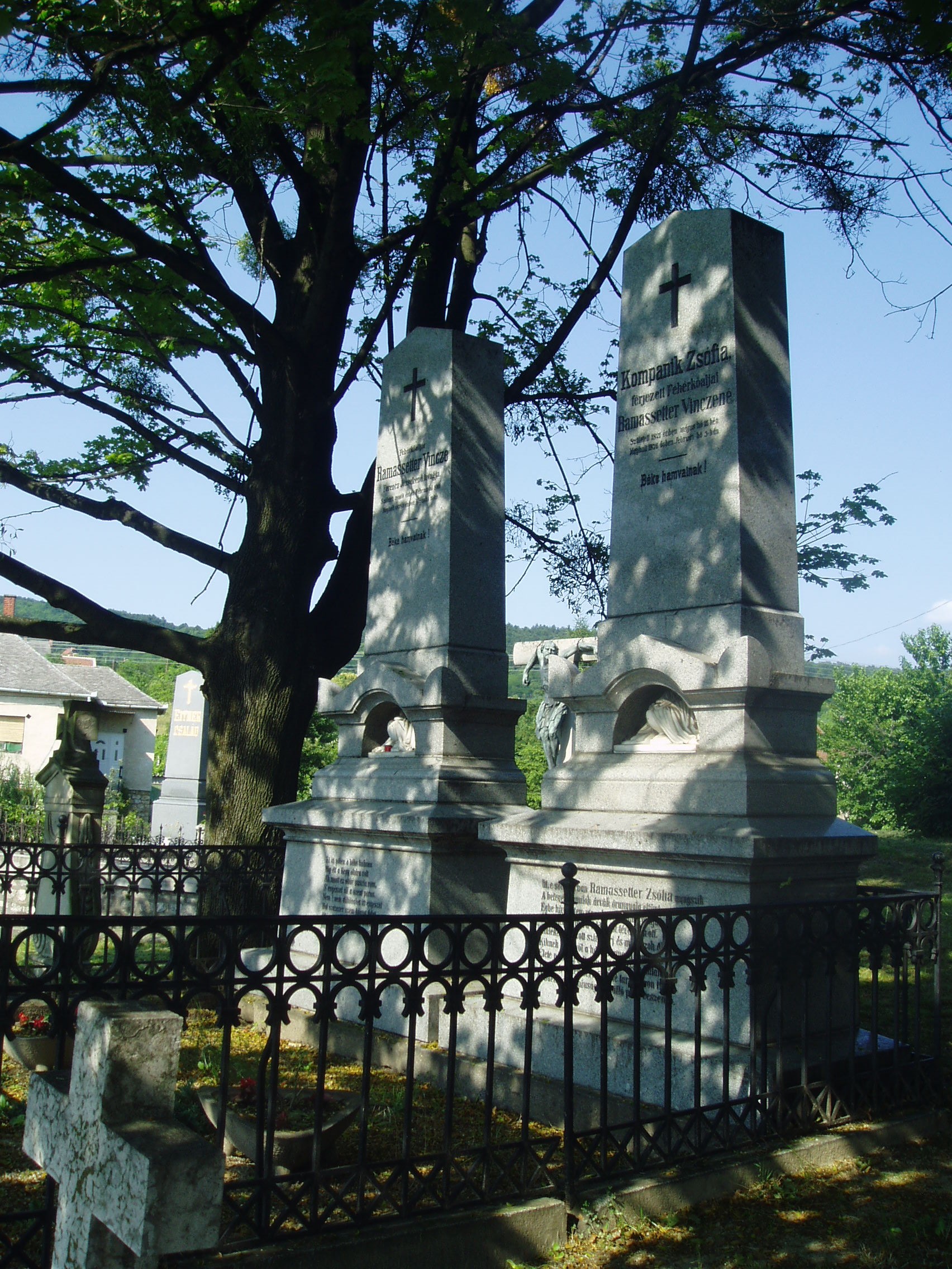 Nyilvános 1017 | 2095 | Sümeg, Temető. Ramassetter Vince sírja | Sümeg délkeleti határában, a Tapolcára vezető út mellett emelkedő lankás domboldalon találjuk a város köztemetőjét. Helyét még Bíró Márton püspök jelölte ki; jelentősebb számban a XIX. század eleje óta kezdtek ide temetkezni. A temetődomb tetején áll az 1816-ban épített, későbarokk stílusú temetőkápolna. Körülötte a sümegi élet utolsó két évszázada szinte valamennyi híres személyiségének sírja fellelhető. Közvetlenül a kápolna előtt magasodik Ramassetter Vince (1806-1878) és felesége, Kompanik Zsófia (1821-1876) kettős, szürke gránitból kifaragott obeliszkje. A Sümeg atyjának is nevezett Ramassetter Vince nevéhez többek között iskolák, óvoda és kórház alapítása fűződik. Nevét és emlékét egészalakos szobor (lásd: Kossuth u. 13.) és több emléktábla is megörökíti a városban (lásd: Árpád u. 5., Deák F. u. 8., Mártirok u. 1., Panteonfal, Rammassetter u. 10.). A fénykép 2007 júniusában készült. Felh. irod.: Koppány Tibor - Kozák Károly: Sümeg útikalauz. Veszprém, Idegenforgalmi Hivatal, 1965 Sümegi kalauz. Sümeg, Sümegi Fórum Alapítvány, 1993 Miklósi-Sikes Csaba: Kőbe vésett történelem. A sümegi városi temetők története és sírjelei 1950-ig. Sümeg, Sümegi Fórum Alapítvány, 2002 Veszprém megyei életrajzi lexikon. Veszprém, Veszprém Megyei Önkormányzat Közgyűlése, 1998 |