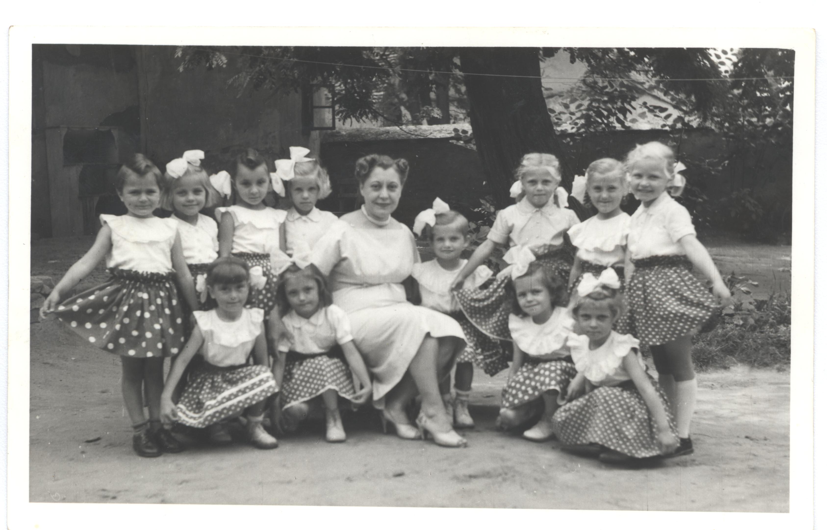 026 Évzáró az óvodában Györgyi óvónénivel - 50-es évek vége.jpg