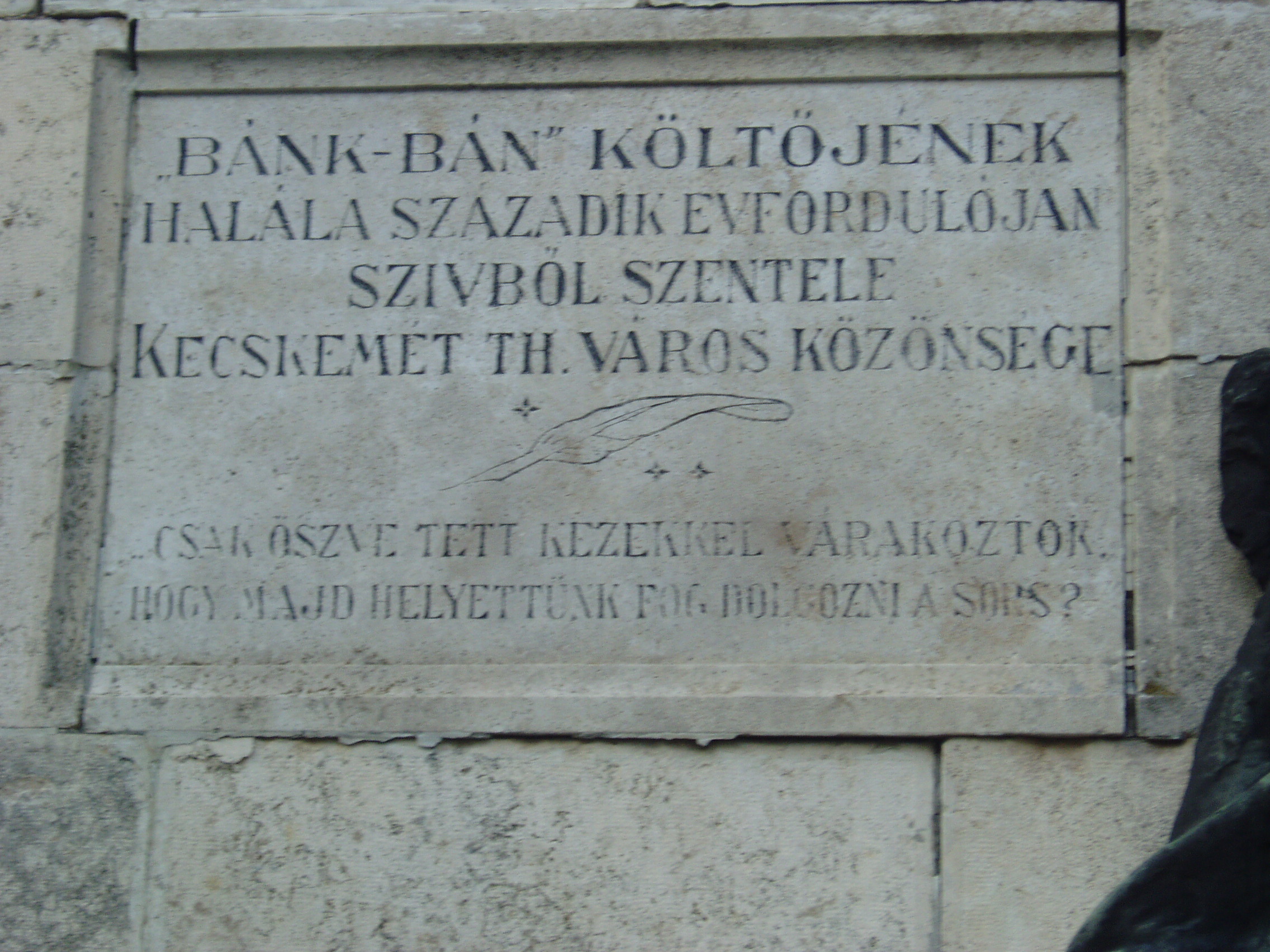 Nyilvános 1139 | 2236 | Kecskemét, Béke fasor 71A. Köztemető: Katona József sírja | Az 1960-as években kialakított, nyárfákkal szegélyezett Béke fasor vezet Kecskemét Köztemetőjébe. Már a bejárattól jól látható Katona József hatalmas síremléke. Katona József 1830. április 16-án Kecskeméten hunyt el (lásd: Bács-Kiskun megye: Kecskemét, Kossuth tér). Ez a mostani már a harmadik nyughelye, Hamvait 1963-ban szállították ide egy felszámolásra ítélt temetőből. Monumentális síremléke még 1930-ban, halálának 100. évfordulója alkalmából készült. A klasszicizáló szarkofágot kőtömbre helyezték egy borostyánnal befuttatott egyméteres kiemelkedésen. A körbefutó hármas lépcsőn Petur bán bronzalakja áll. Az alkotó eredeti terveiben Tiborcot kívánta megjeleníteni az emlékművön, de az akkori várospolitikusok inkább a nemes Petur mellett döntöttek... A fénykép 2006 augusztusában készült. Felh. irod.: Heltai Nándor: Kecskemét. Kecskeméti Lapok, 1998 |
