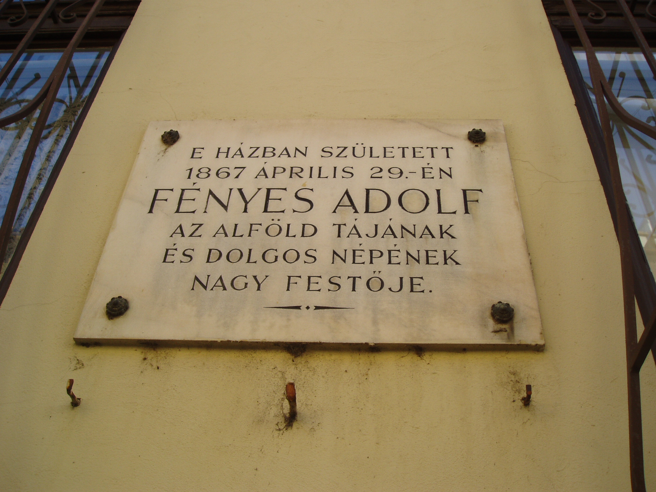 Nyilvános 1126 | 1813 | Kecskemét, Wesselényi utca 6. | Az emeletes városi házon olvasható emléktábla szerint itt született 1867. április 29-én Fényes Adolf. Heltai Nándor, kecskemét történetének kutatója szerint a tábla szövege pontatlan, mert a festőművész nem ebben a házban, hanem a helyén állott korábbi épületben született. Szerinte ez a ház Moór Emánuel zongoraművész és feltaláló szülőháza. Ő viszont Fényes Adolfnál néhány évvel korábban, 1863-ban született, tehát - ha Heltai információja helyes - ő sem ebben a házban, hanem az elődében látta meg a napvilágot. A fénykép 2006 augusztusában készült. Felh. irod.: Heltai Nándor: Kecskemét. Kecskeméti Lapo, 1998 |