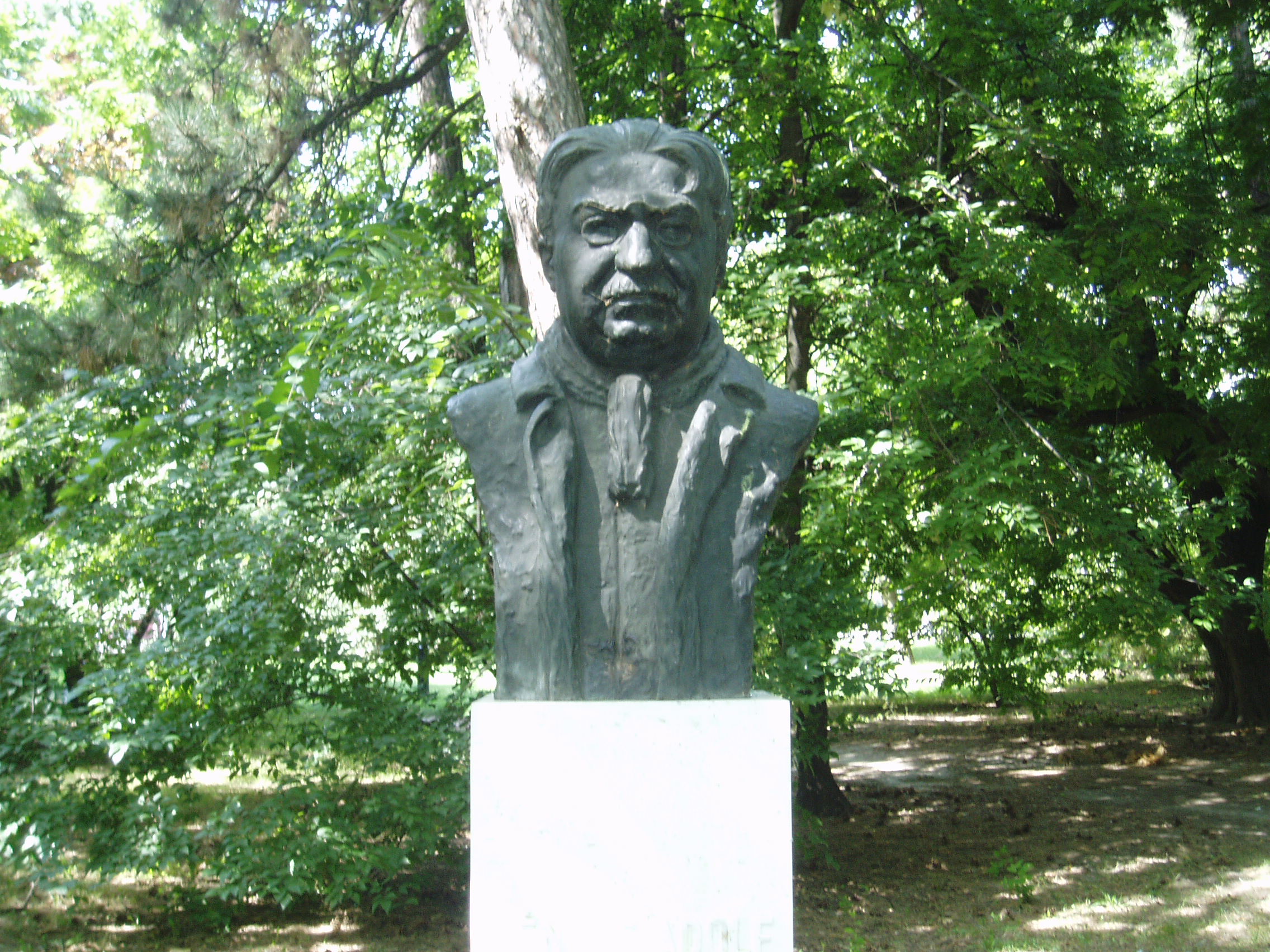 Nyilvános 1030 | 1599 | Kecskemét, Katona József park: Fényes Adolf szobra | A Vasútállomás közelében levő parkban alakították ki Kecskemét panteonját. Fényes Adolf (1867-1945) kecskeméti születésű festőművész szobra Petri Lajos alkotása. A fénykép 2006 augusztusában készült. Felh. irod.: Heltai Nándor: Kecskemét. Kecskeméti Lapok, 1998 |