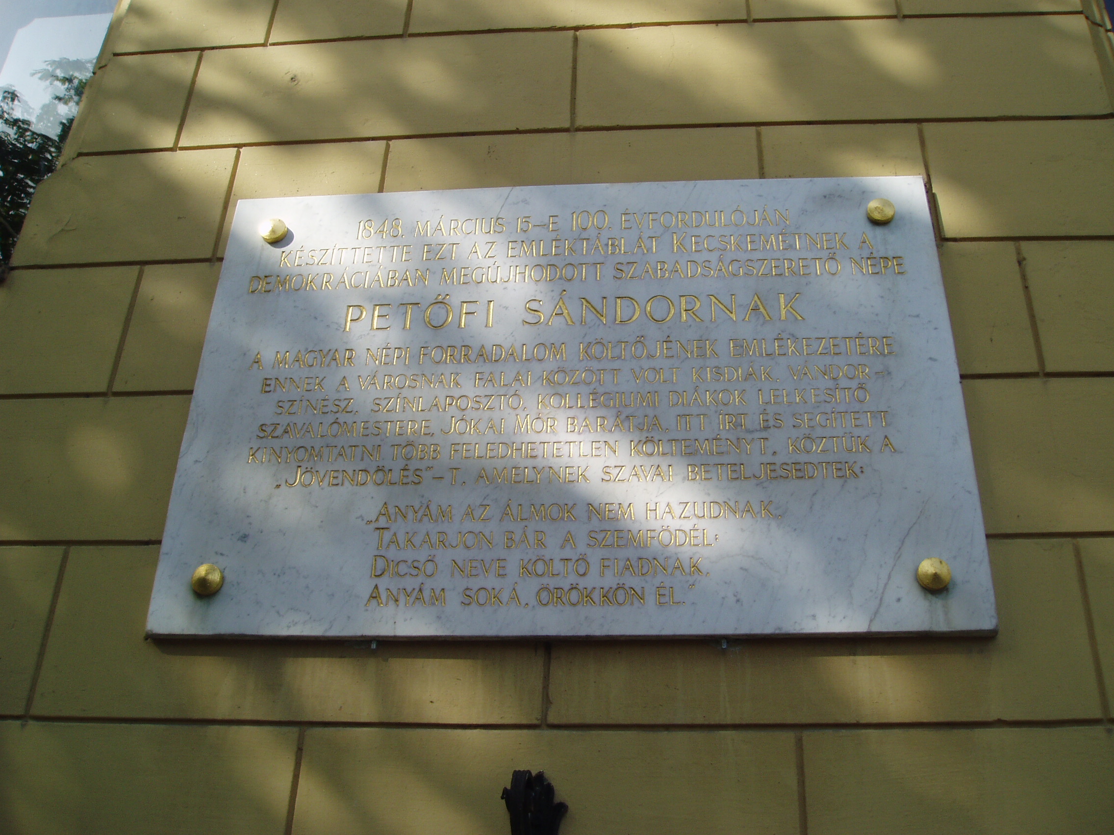 Nyilvános 1000 | 1571 | Kecskemét, Kossuth tér 1. | A szecessziós stílusú városháza 1892-1896 között épült Lechner Ödön és Pártos Gyula tervei szerint. A külső majolikadíszek a Zsolnay-gyárban készültek. Pompázatos közgyűlési termében Székely Bertalan freskói láthatók. Az épület külső homlokzatán több emléktábla is található, köztük Petőfi Sándoré, akinek élete többször is kapcsolódott a városhoz. A fénykép 2006 augusztusában készült. Felh. irod.: Heltai Nándor: Kecskemét. Kecskeméti Lapok, 1998 |
