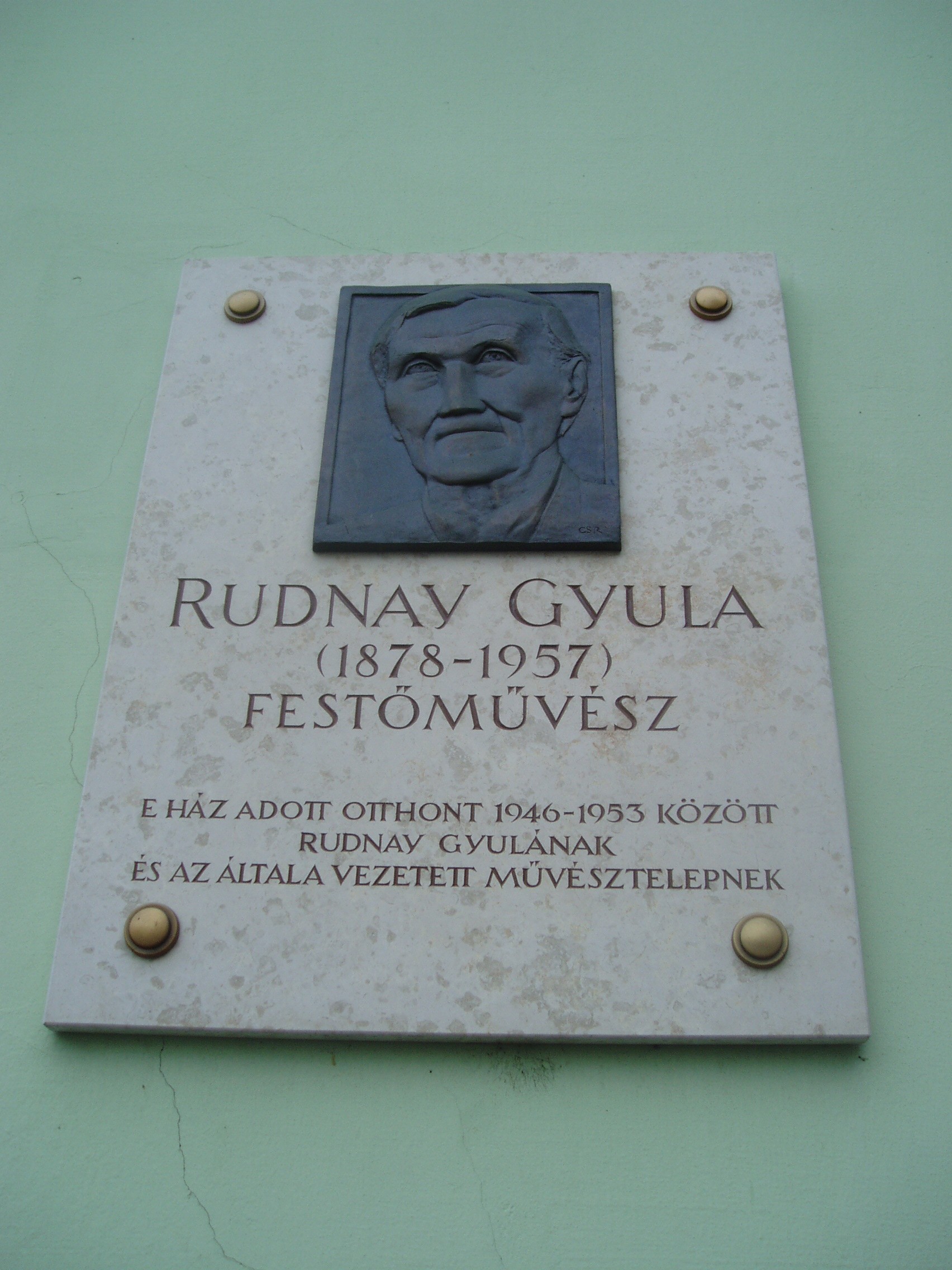 Nyilvános 1359 | 2962 | Baja, Arany János utca 1. | Az egykori Vojnich-kúria 1820 körül épült klasszicista stílusban. Amint a omlokzaton elhelyezett portrédomborműves emléktáblán is olvasható, 1946 és 1953 között ez az épület adott otthont a Rudnay Gyulának és az általa vezetett művésztelepnek. A kúria ma a Nagy István Baján élt (lásd: Baja, Nagy István u. 8.) festőről elnevezett képtár otthona. A XX. századi modern magyar képzőművészet reprezentánsait bemutató gyűjteményben külön egységet képeznek az ő alkotásai. A kiállítás másik nagy gyűjteménye Rudnay Gyula festőművész munkásságát, bajai iskolateremtő tevékenységét mutatja be. Itt látható az Oltványi Imre műgyűjtő által a múzeumnak adományozott modern képzőművészeti anyag is. A fénykép 2007 októberében készült. Felh. irod.: Látnivalók Bács-Kiskun megyében. Miskolc, Well-PRess, 2002 |