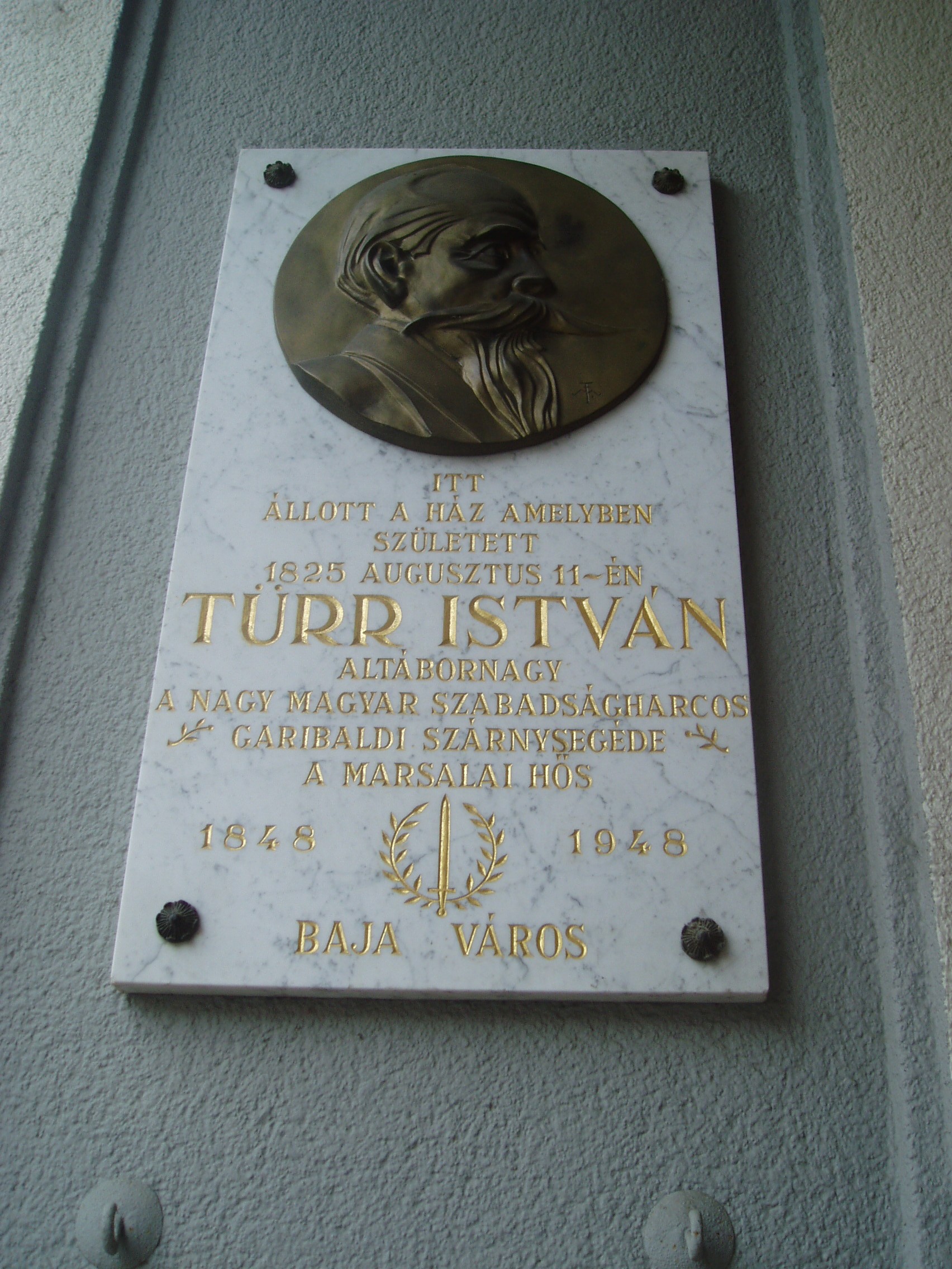 Nyilvános 1377 | 2888 | Baja, Bartók Béla utca 10. | Mint az épület homlokzatán elhelyezett emléktáblán is olvasható, egykor itt állott az a ház, amelyben született 1825. augusztus 11-én Türr István, a nagy magyar szabadságharcos, Garibaldi szárnysegéde, a marsalai hős. Apja Türr Jakab, anyja Udvary Terézia volt. Iskoláit szülővárosában végezte barátjával, Tóth Kálmán költővel együtt. Fiatalon beállt katonának, a császári hadseregben Ferenc Károly főherceg ezredében szolgált. Az 1848. évi olasz forradalom kitörésekor Radeczky seregével hadnagyi rangban Olaszországba került. 1849. január 19-én megszökött a seregből, és piemonti területre jutott, ahol egy alakuló magyar légió parancsnokságát vette át. A novarai vereség hallatán azonban csapata feloszlott, ő maga Badenba utazott, ahol a forradalmi seregben ezredes lett. A forradalmat azonban itt is leverték, és Türr Svájcba menekült. Ott értesült a világosi fegyverletételről, ekkor hosszabb tartózkodásra Londonba költözött. A krími háború kitörésekor belépett az angol seregbe, ahol magas rendfokozatot kapott. 1855 végén az angol kormány megbízásából a dunai tartományokba utazott, ahol egy volt tiszttársa feljelentése nyomán elfogták, Bécsbe vitték, ahol a hadbíróság halálra ítélte, s csak Viktória királynő közbenjárására bocsátották szabadon. 1856-ban Törökországba ment, részt venni a cserkesz háborúban az oroszok ellen. 1859-ben, amikor kitört az olasz függetlenségi harc, több honfitársával együtt Türr is odasietett, hogy az Ausztria elleni háborúban részt vegyen. Itt Giuseppe Garibaldi mellett szolgált. A villafrancai béke után ismét Garibaldi mellé állt mint annak hadsegéde, s egyike volt a „halhatatlan ezrednek”, amely végül bevette Palermót. Palermo bevétele leginkább Türr tanácsai miatt sikerült, ezért Garibaldi a nemzetőrség főfelügyelőjévé és tábornokká nevezte ki. Harcban szerzett sebesülése miatt egy ideig a hadsereg további szervezésén fáradozott, majd döntő szerepe volt a messinai ütközetben aratott győzelemben is. Nápoly bevétele után Garibaldi a város polgári és katonai kormányzójává nevezte ki. A hadjárat után az olasz kormány megerősítette altábornagyi rangját, és kinevezte őt Viktor Emmanuel szárnysegédjévé, ezáltal sok kényes diplomáciai ügy elintézését bízták rá. 1861. szeptember 10-én Mantovában feleségül vette III. Napóleon unokahúgát, Wyse-Bonaparte Adélt Az általános amnesztia után visszatért Magyarországra, és itt a közügyekben élénken részt vett, s közben politikai missziókat is teljesített: 1870-ben, bár nem hivatalosan, sokat fáradozott a francia, olasz és osztrák–magyar szövetség létrehozása körül. Élete alkonyán legtöbb idejét Párizsban töltötte, több olasz királyi rend nagykeresztes vitéze volt. Mind a mai napig róla van elnevezve a palermói laktanya. A fénykép 2007 októberében készült. Felh. irod.: www.wikipedia.org |