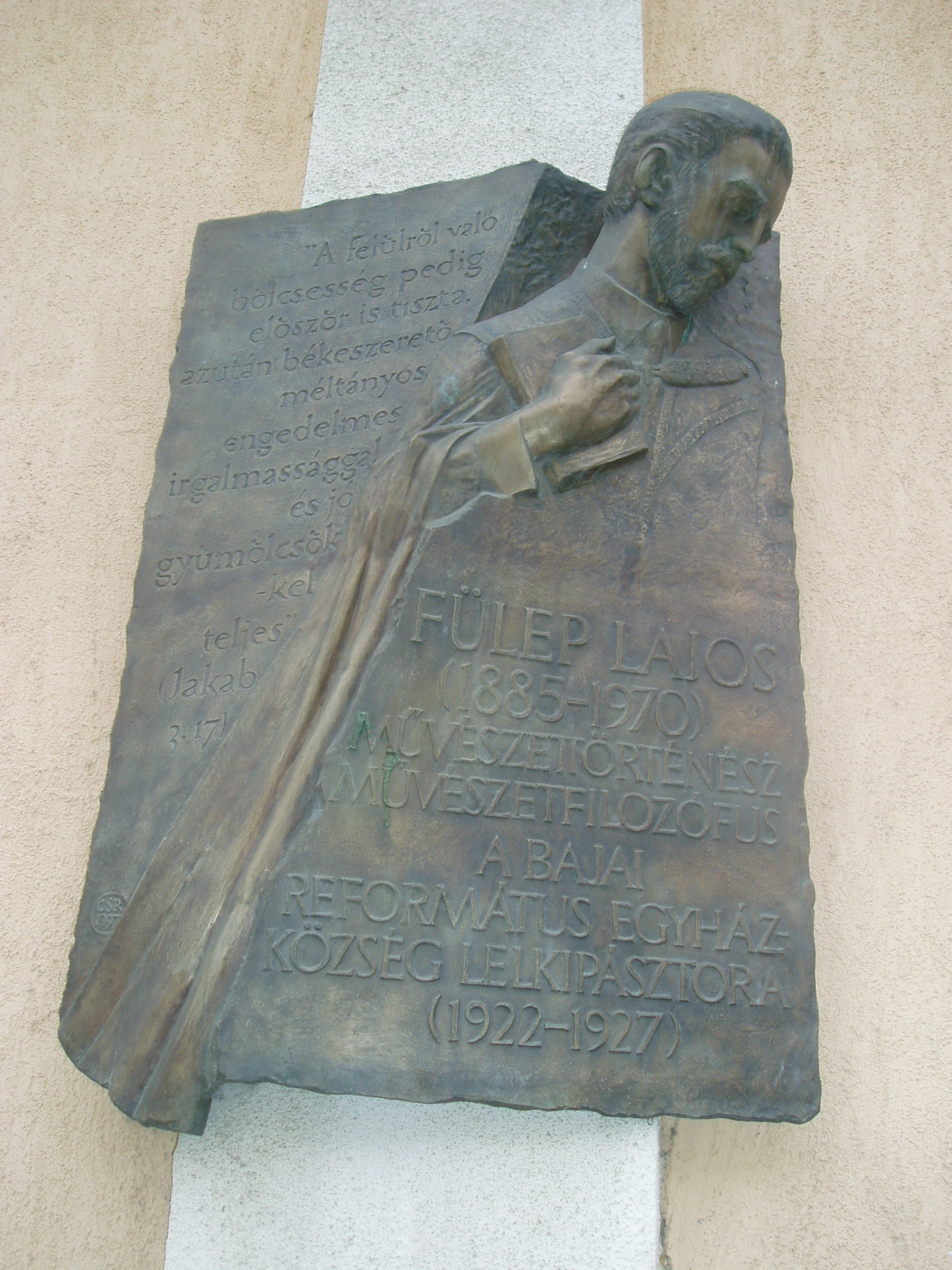 Nyilvános 1414 | 3146 | Baja, Deák Ferenc utca 17. Református templom | A bajai egyház alapjait a felvidékről érkező református családok tették le a XVIII. században. Mai, eklektikus stílusú templomuk 1892-ben készült el Szeberény János tervei szerint. Mint a homlokzatán elhelyezett portrédomborműves emléktáblán olvasható, itt volt lelkipásztor 1922 és 1927 között Fülep Lajos (1885-1970) művészettörténész, művészetfilozófus. A fénykép 2007 októberében készült. Felh. irod.: http://bacs-kiskun.hu |