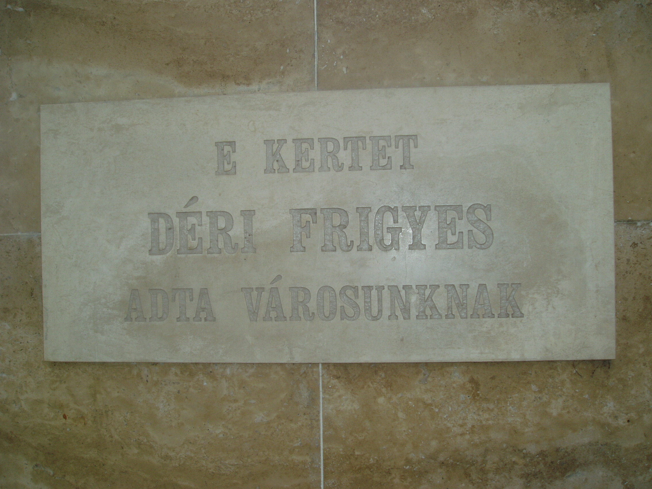 Nyilvános 1314 | 3082 | Baja, Déri kert | A belváros romantikus parkja Déri Frigyes, a bajai származású, szülővárosába dúsgazdagon hazatérő selyemgyáros, műgyűjtő nevét viseli, hiszen a szép sétakert az ő kezdeményezésére jött létre. Déri Frigyes röviddel az első világháború kitörése előtt gyermekkora városának ajánlotta fel gazdag egyetemes kultúrtörténeti gyűjteményét és könyvtárát. Fel akarta építeni a közművelődés házát, ezért vásárolta meg a ferences barátok kertjének egy részét, s azt a városnak ajándékozta. Az első világháború kitörése miatt azonban tervének megvalósítását a "béke helyreállta utáni" időkre halasztották. A háború után 1919-ben azonban Baja szerb megszállás alá került, s Déri - bizonytalannak ítélve a város sordát - visszavonta adományát, s gyűjteményét Debrecennek ajándékozta (lásd: Hajdú-Bihar megye/Debrecen, Déri tér 1.). Az általa megvásárolt területen pihenőparkot hoztak létre. Bejáratánál emléktábla örökíti meg Déri Frigyes nevét, akinek a parkban mellszobrát is felállították. A fénykép 2007 októberében készült. Felh. irod.: Látnivalók Bács-Kiskun megyében. Miskolc, Well-PRess, 2002 www.museum.hu/museum/index_hu.php?ID=108 |