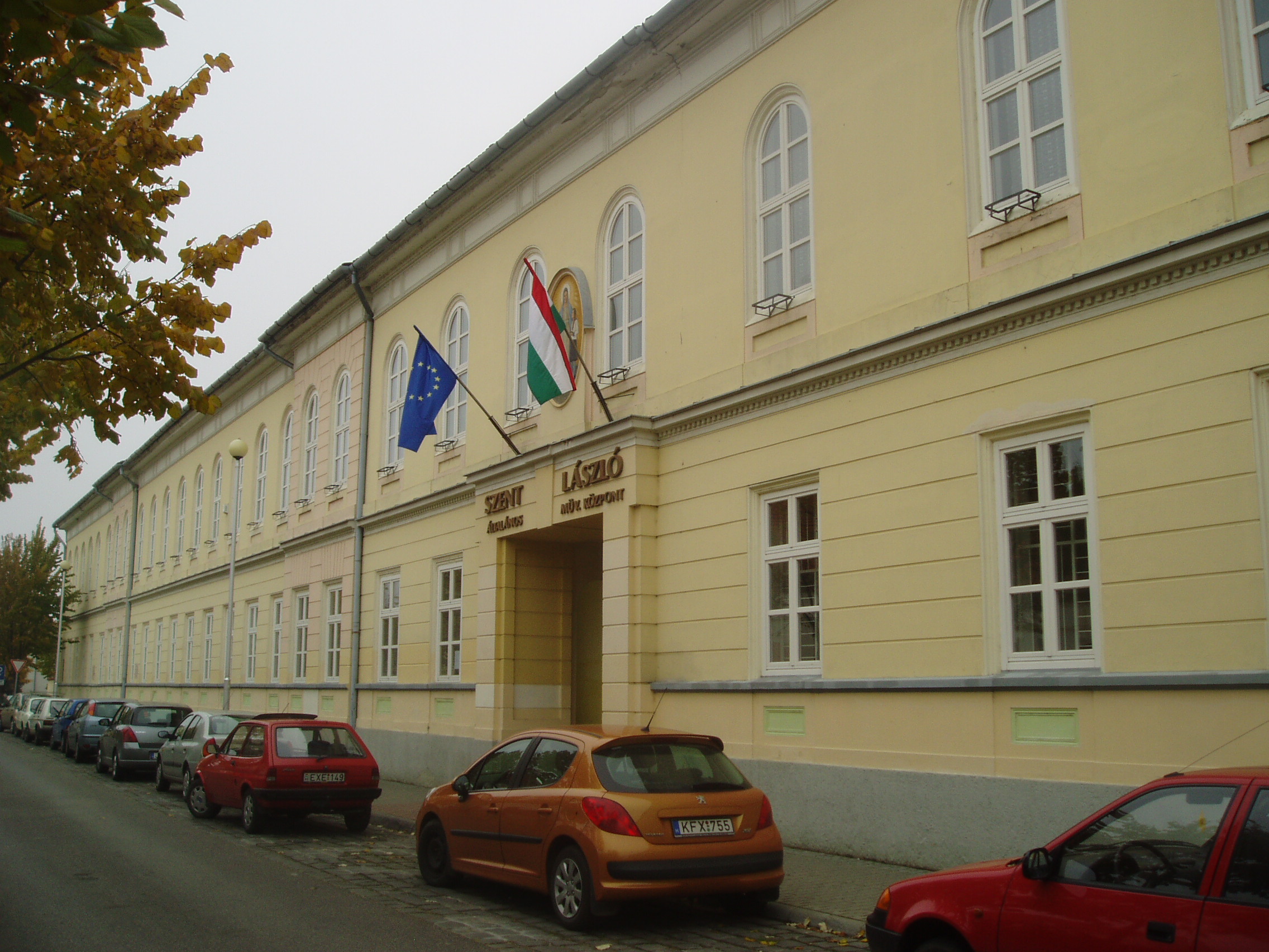 Nyilvános 992 | 1457 | Baja, Katona József utca 1-3. | Ebben az épületben működött a kalocsai székhelyű, Miasszonyunkról Nevezett Szegény Iskolanővérek zárdaiskolája. A tanító rend 1860-ban telepedett meg Kalocsán. Hamarosan, egy adománynak köszönhetően elkezdhették építeni bajai iskolájukat is, amelyet 1870-ben Haynald Lajos kalocsai érsek szentelt fel. A későbbiekben több átalakítást és bővítést is végrehajtottak az épületen, amelyben 1903-tól polgári leányiskolai, 1929-től pedig tanítóképzés is folyt. Az 1996 óta Szent László Általános Művelődési Központ néven működő intézmény keretein belül az épületben keresztény óvoda, keresztény általános iskola, nyolc és négyévfolyamos gimnázium, illetve környezetvédelmi és vízügyi szakközépiskola működik. Felh. irod.: A fénykép 2007 októberében készült. www.sztlaszlo.hu/intezmenyrol.htm |
