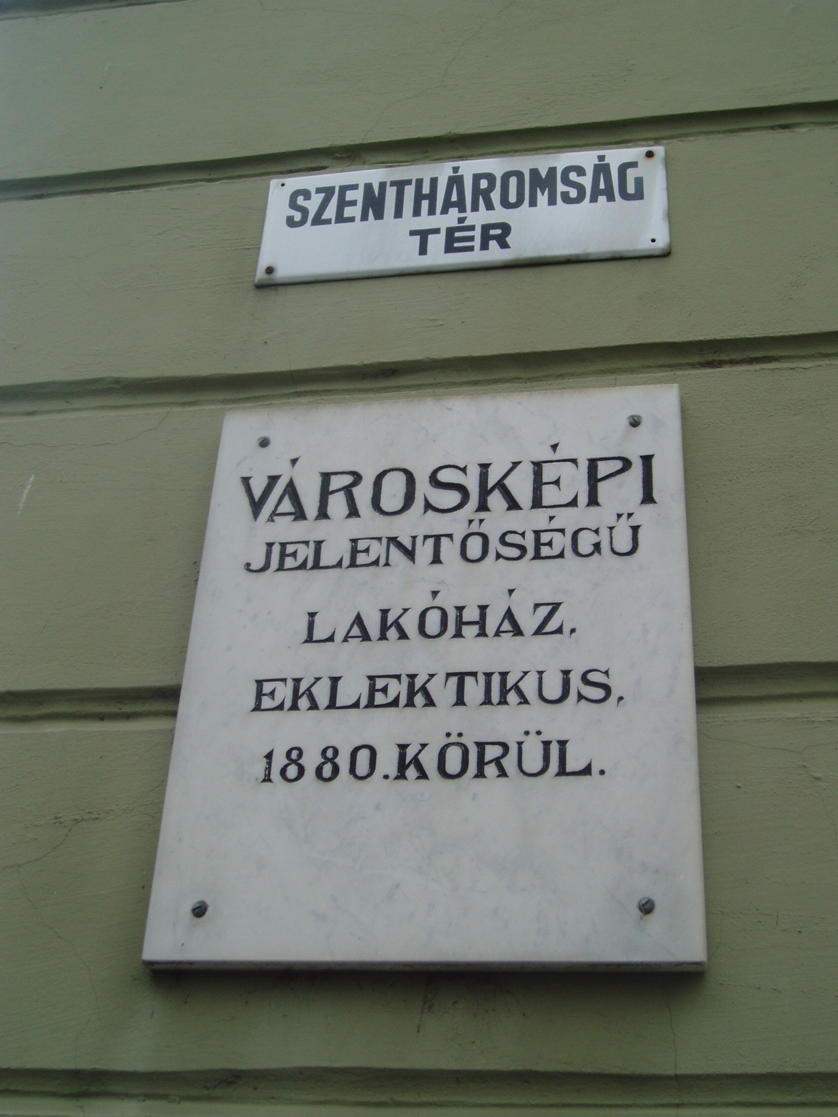 Nyilvános 1047 | 1685 | Baja, Szentháromság tér 3. | A bajai Szentháromság teret magyarországi Szent Márk térként emlegetik. Értékét nemcsak épületei, hanem kövezete is adja. A teret, amely három oldalról beépített, s nyitott negyedik oldala a Sugovicára néz, lóhere formában keresztezik az utak. A teret városképi jelentőségű épületek veszik körül, ezek egyike a 3. számú, 1880 körül eklektikus stílusban épült városi palota. Itt működött egykor a Reich Farkas és Fiai cég áruháza. A fénykép 2007 októberében készült. Felh. irod.: Látnivalók Bács-Kiskun megyében. Miskolc, Well-PRess, 2002 Magyarország műemlékjegyzéke: Bács-Kiskun megye. Bp. Kulturális Örökségvédelmi Hivatal, 2006 |