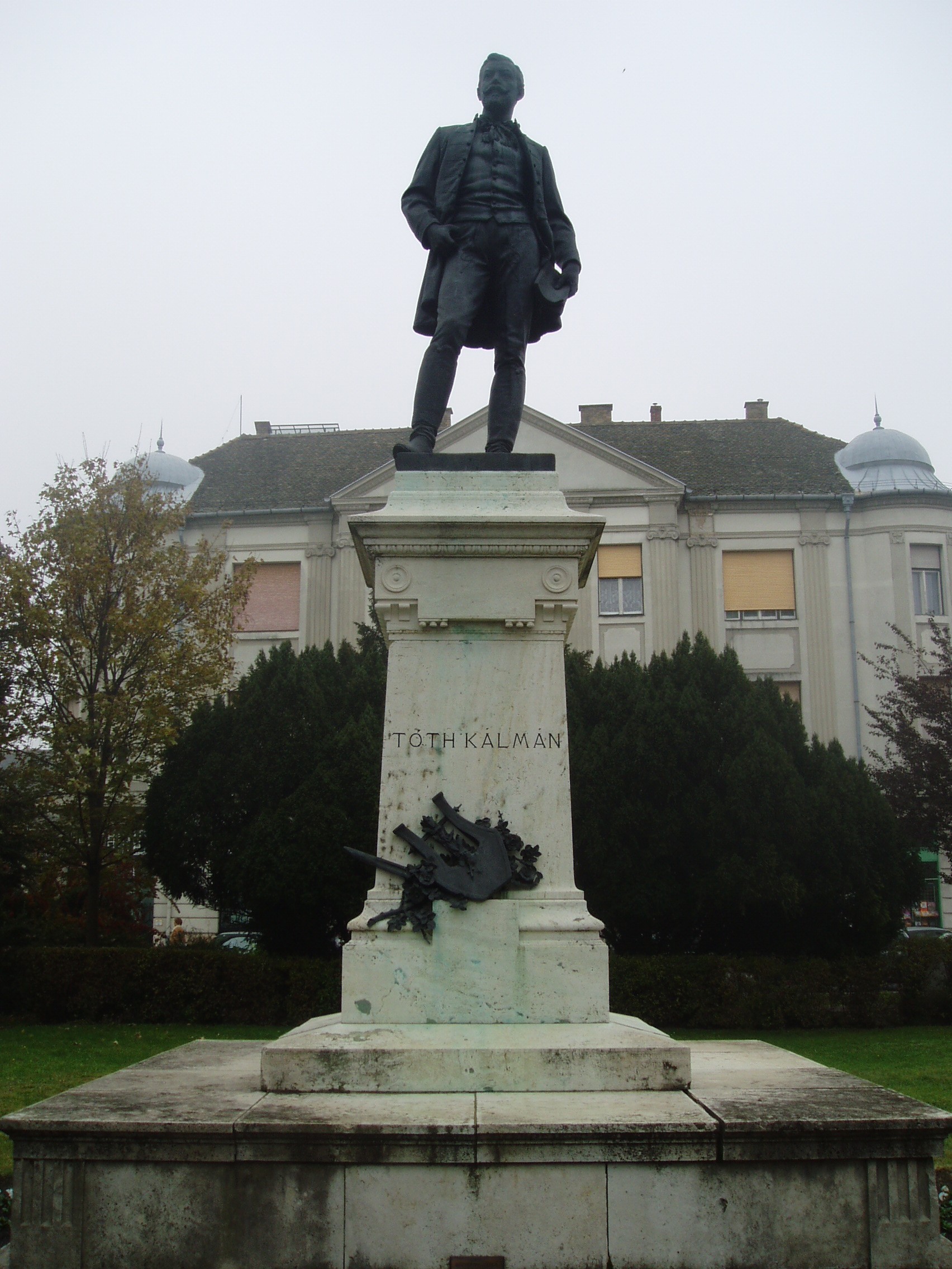 Nyilvános 1082 | 2579 | Baja, Tóth Kálmán tér: Tóth Kálmán szobra | A bajai születésű költő, Tóth Kálmán (1831-1881) 1894-ben felállított egészalakos szobra Bezerédy Gyula alkotása. A népszerű költő több verséből lett népdal (Felleg borult az erdőre, Befútta az utat a hó); ő szerkesztette a Hölgyfutárt, írt színdarabokat és 1865-től négy cikluson át Baja országgyűlési képviselője volt. Legfontosabb politikai sikerei közé tartozott, hogy városának járási jogokat harcolt ki, és megalapíttatta az Eötvös József Főiskola elődjét. A tér is az ő nevét viseli. A fénykép 2007 októberében készült. Felh. irod.: Látnivalók Bács-Kiskun megyében. Miskolc, Well-PRess, 2002 Magyar életrajzi lexikon |