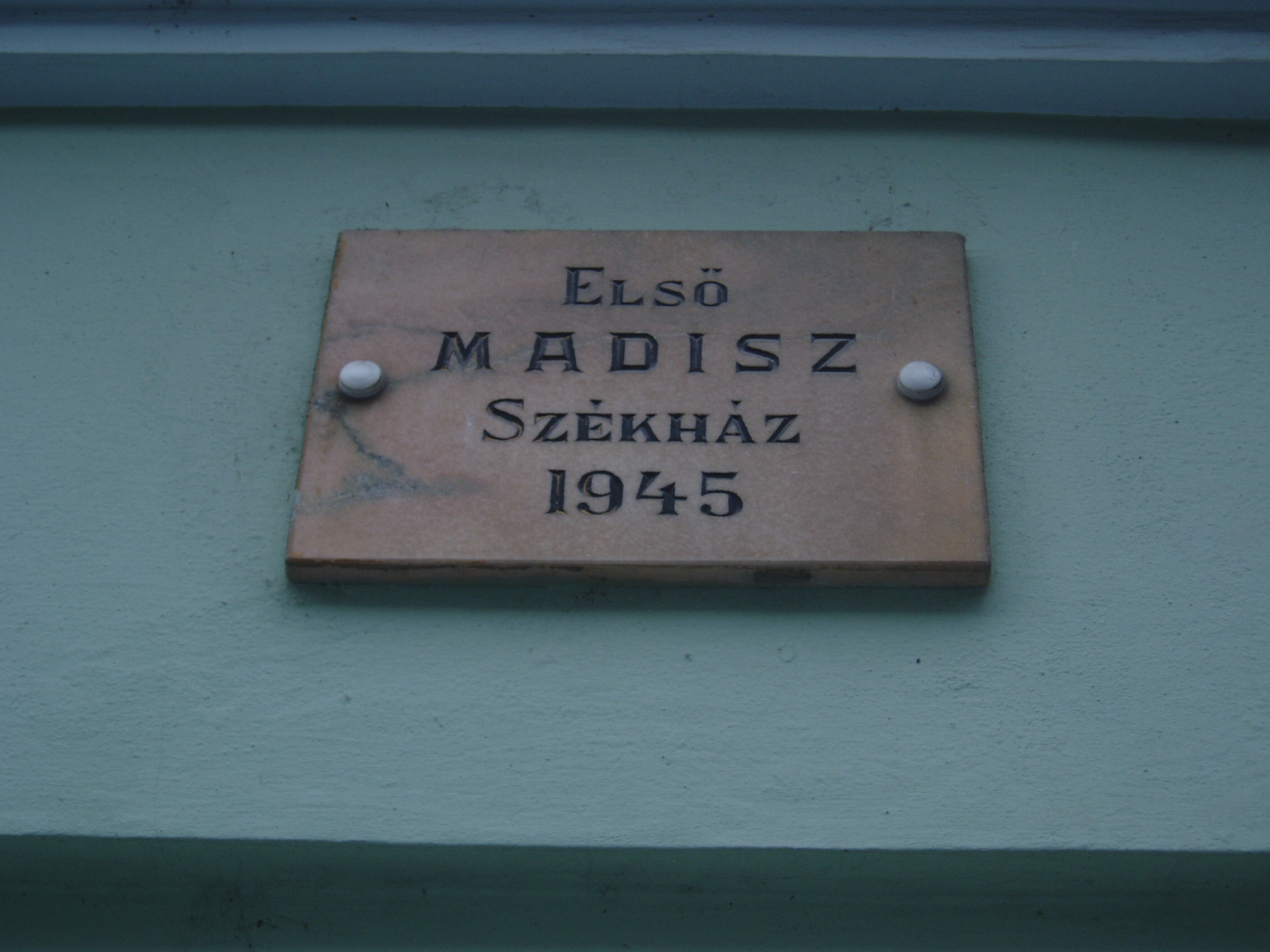 Nyilvános 1038 | 1480 | Baja, Vörösmarty utca 4. | Ebben a házban volt a bajai MADISZ első otthona 1945-ben. A Magyar Demokrata Ifjúsági Szövetség a párton kívüli 15-24 éves ifjúságot tömörítő tömegszervezet volt. Az MKP kezdeményezésére és javaslatára Szegeden 1944. december 31-én alakult meg. 1950-ben beolvadt a DISZ-be (Dolgozó Ifjúság Szövetsége), amelyből 1957. március 21-én Magyar Kommunista Ifjúsági Szövetség (KISZ) néven alakult meg a párt vezetése alatt az új ifjúsági tömegszervezet. A fénykép 2007 októberében készült. Felh. irod.: Politikai kisszótár. Bp. Kossuth Könyvkiadó, 1986 |