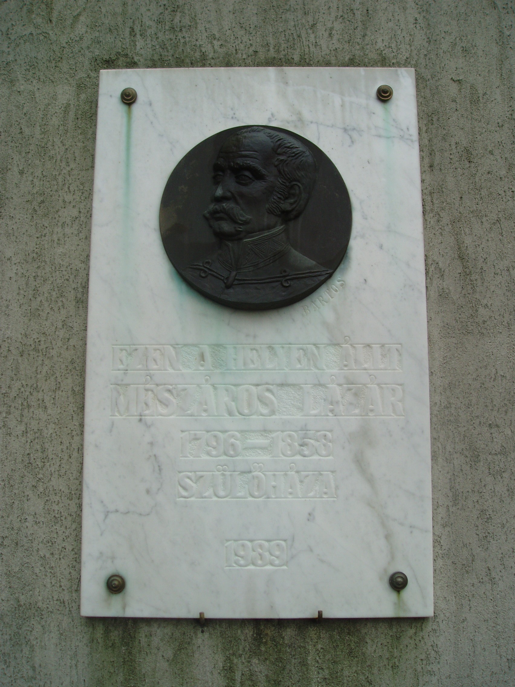 Nyilvános 1052 | 1503 | Baja, Vörösmarty utca 6. | A modern lakóház helyén állt egykor Mészáros Lázár, az első magyar hadügyminiszter szülőháza (Kemény Simon 1931-es könyve szerint az épület 1902. nagyszombat délutánján összeomlott). Márvány emléktábláját 1989-ben helyezték el. Mészáros Lázár 1796. február 20-án született Baján. Kicsiny gyermek volt még, amikor nemességet nyert, táblabíró és földbirtokos apja meghalt. Anyja beteges volta miatt a kis Lázár Katymáron nevelkedett nagybátyjánál, az ottani plébánosnál. Négyéves korában már írt és olvasott, „valami csoda kisfiúnak tartották”. Iskoláit Baján, Szabadkán, Pécsett, majd Pesten végezte. Hihetetlen műveltségre tett szert a világi és az egyházi ismeretekben egyaránt. Közben egyre jobban elmélyedt a katonai tudományokban, rendszeresen gyakorolta a fegyverforgatást és a lovaglást. 1813-ban vette kezdetét fényes katonai karrierje. 1845-ben a híres Radetzky-huszárezred ezredparancsnokává nevezték ki. Katonai elfoglaltságai mellett a tudományokkal is behatóan foglalkozott, elsősorban gazdasággal és hadüggyel. Tudományos előrehaladása egybeesett a magyar reformellenzéknek az abszolutizmus elleni küzdelmeivel. Akadémiai székfoglaló értekezésében a polgári társadalom ütőképes hadseregének képét vázolta fel. Lombardiában állomásozott, amikor megtudta, hogy az első felelős magyar kormány hadügyminiszterévé nevezték ki. Ő volt a Batthyány-kormány egyetlen minisztere, aki nem mondott le, hadügyminiszterként lett a megalakuló Országos Honvédelmi Bizottmány tagja. 1849. január 9-én felmentették hadtestparancsnoki beosztásából, de a Függetlenségi Nyilatkozat kiadásáig továbbra is hadügyminisztereként tevékenykedett. Ettől kezdve május 6-ig volt ideiglenes hadügyminiszter, majd július 1-jén Kossuth Lajos a leváltott Görgei helyére főparancsnokká nevezte ki. A temesvári csata után augusztus 14-én Törökországba távozott. Törökországban, Franciaországban, Angliában és az Egyesült Államokban élt. 1858-ban Angliában hunyt el. hamvait a rendszerváltás után hozták haza szülővárosába (lásd: Baja, Rókus utca: Rókus temető). A fénykép 2007 októberében készült. Felh. irod.: Gál Zoltán: Mészáros Lázár, a tudós katona. = www.bacskaisport.hu Magyar életrajzi lexikon Sárközi Mátyás: Honvédsír esőben. = Európai Utas 2003. 4. Kemény Simon: Csonka-Bácska Tükre. Homok, 1931 |