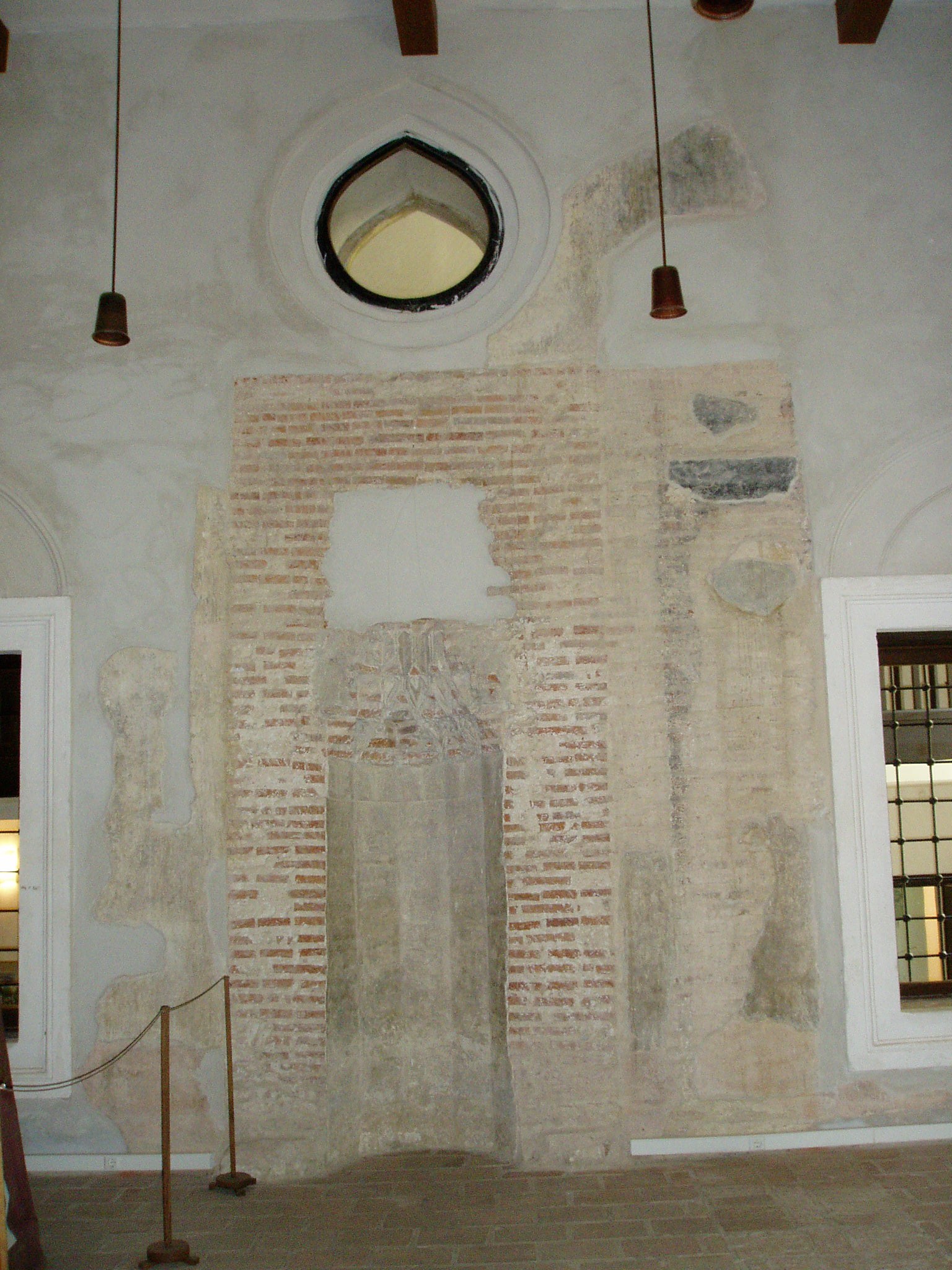 Nyilvános 1129 | 1930 | Szigetvár, Vár: dzsámi | A vár egyik központi épülete a Szulejmán dzsámi, amely a győztes szultán tiszteletére épült a XVI. században. A téglalap alaprajzú dzsámi Mekka felé néző oldalán látható a kőkeretes, egykor csempével borított, szalaktit boltozatú imafülke (mihrab). A dzsámit L alakú folyosó veszi körül, ennek délkeleti oldalán egy másik mihrab fülke található. Északnyugaton csatlakozik a dzsámihoz a szabályos tizennégyszög alakú minaret, amelynek nagy része a XVIII. században leomlott. A fénykép 2005 júniusában készült. Felh. irod.: Török műemlékek Magyarországon. = www.terebess.hu/keletkultinfo/minaret/szigetvar.html |