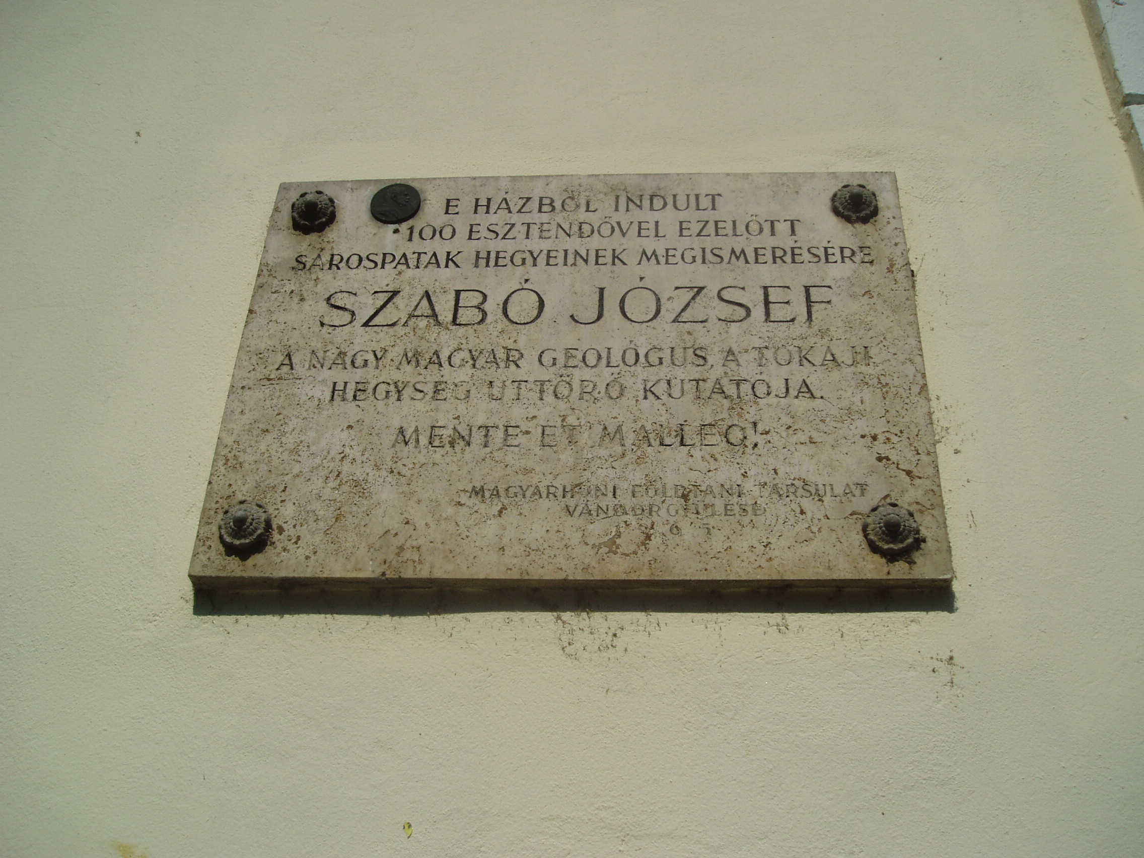 Nyilvános 1371 | 3168 | Sárospatak, Comenius utca 2. | A házon a Magyarhoni Földtani Társulat vándorgyűlése által 1965-ben felavatott emléktábla olvasható, mely szerint ebből a házból indult el száz évvel korábban Sárospatak hegyeinek megismerésére Szabó József (1822-1894), a nagy magyar geológus. A fénykép 2007 augusztusában készült. |