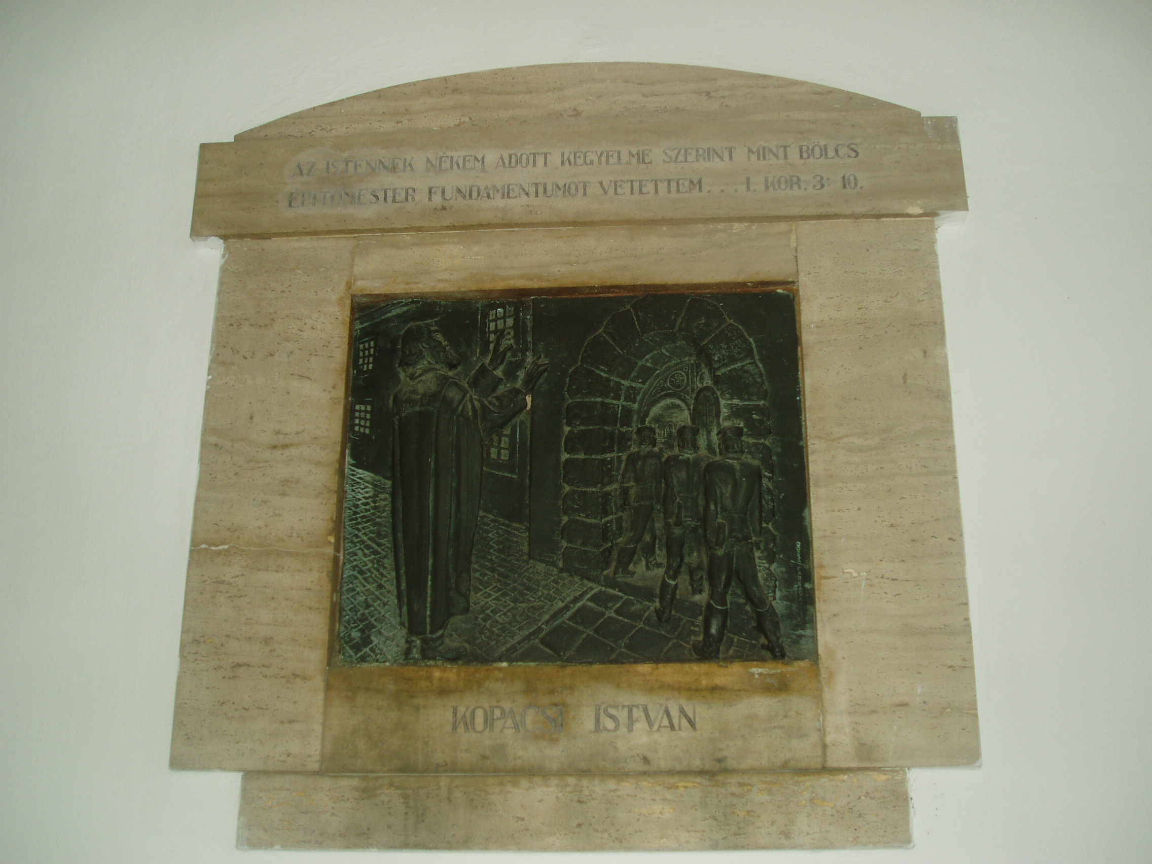 Nyilvános 955 | 1414 | Sárospatak, Rákóczi utca 1. Református Kollégium | A kollégium főépülete, a Nagy Kollégium a Rákóczi út északi végén található, mely 1804–1814 között korai klasszicista stílusban épült. Szép ráccsal ellátott, háromíves nyílású kapuzat vezet be az un. „nagyportá”-ba, amelyet két sor vaskos pillér három hajóra oszt. Kétoldalt a falakon az iskolatörténet néhány fontosabb eseményének, illetve a kollégium nagy alakjainak bronz domborművű ábrázolásait helyezték el. A képen Kopácsi István domborműve látható. Kopácsi István ferences rendi szerzetes volt, őt állította az 1531-ben alapított református iskola élére Perényi Péter, Patak földesura. Az 1937-ben felavatott dombormű alkotója Dózsa Farkas András. A fénykép 2007 augusztusában készült. Felh. irod.: Détsy Mihály: Sárospatak. Bp. Corvina, 1974 Látnivalók Borsod-Abaúj-Zemplén megyében. Miskolc, Well-PRess, 1995 www.sarospatak.hu/nevezetessegek |
