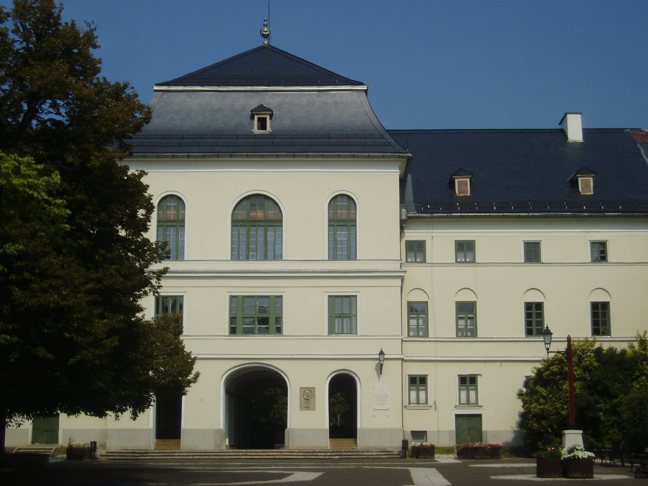 Nyilvános 944 | 1478 | Sárospatak, Rákóczi utca 1. Református Kollégium | A Református Kollégium Sárospatakot évszázadokon át fontos kulturális központtá tette. Csokonai a „Múzsák székhelyé”-nek mondta, nevezték „Bodrog–parti Athén”-nek, s később, angol nyelven megszerezhető és érvényesíthető diplomájának köszönhetően érdemelte ki a „Magyar Cambridge” elnevezést. Ködöböcz József Sárospatak a magyar művelődés történetében című könyvében így írja le a kollégium épületegyüttesét: A kollégium főépülete, a Nagy Kollégium a Rákóczi út északi végén (Rákóczi út 1. sz.) található, mely 1804–1814 között korai klasszicista stílusban épült. Szép ráccsal ellátott, háromíves nyílású kapuzat vezet be az un. „nagyportá”-ba, amelyet két sor vaskos pillér három hajóra oszt. Kétoldalt a falakon az iskolatörténet néhány fontosabb eseményének, a kollégium nagy alakjainak bronz domborművű ábrázolása látható. Az épület manzárdtetős középső részének második emeletén van a díszterem, az egykori „nagy auditórium”, az iskolai ünnepélyek, istentiszteletek, előadások, egyéb rendezvények helyszíne. A nagyportáról balra a középiskolai leánykollégiumnak (régen: Teológiai Internátus), jobbra pedig a Tiszáninneni Református Egyházkerület Tudományos gyűjteményeinek (Nagykönyvtár, Adattár, Levéltár) a bejárata nyílik. A könyvtár első emeleti nagy termének belső kiképzését a magyar klasszicizmus nagy mestere, Pollack Mihály tervezte. Az iskola udvarán balra, a leánykollégium folytatásaként, egészen a Kossuth utcáig a gimnázium kétemeletes épülete áll. Jobbra az udvar déli oldalán található a legrégibb, ma még meglévő, kollégiumi épület, amely az 1770-es évek „provinciális építkezésének” szép emléke s amelynek földszinti termei a Tudományos Gyűjtemények gazdag múzeumi anyagának raktározására, az emeleti helyiségek pedig állandó kiállítás céljaira szolgálnak. A képen a Kollégium főépületének udvari homlokzata látható. A fénykép 2007 augusztusában készült. Felh. irod.: Ködöböcz József: Sárospatak a magyar művelődés történetében. Sárospatak, 1991 Détsy Mihály: Sárospatak. Bp. Corvina, 1974 Látnivalók Borsod-Abaúj-Zemplén megyében. Miskolc, Well-PRess, 1995 www.sarospatak.hu/nevezetessegek |