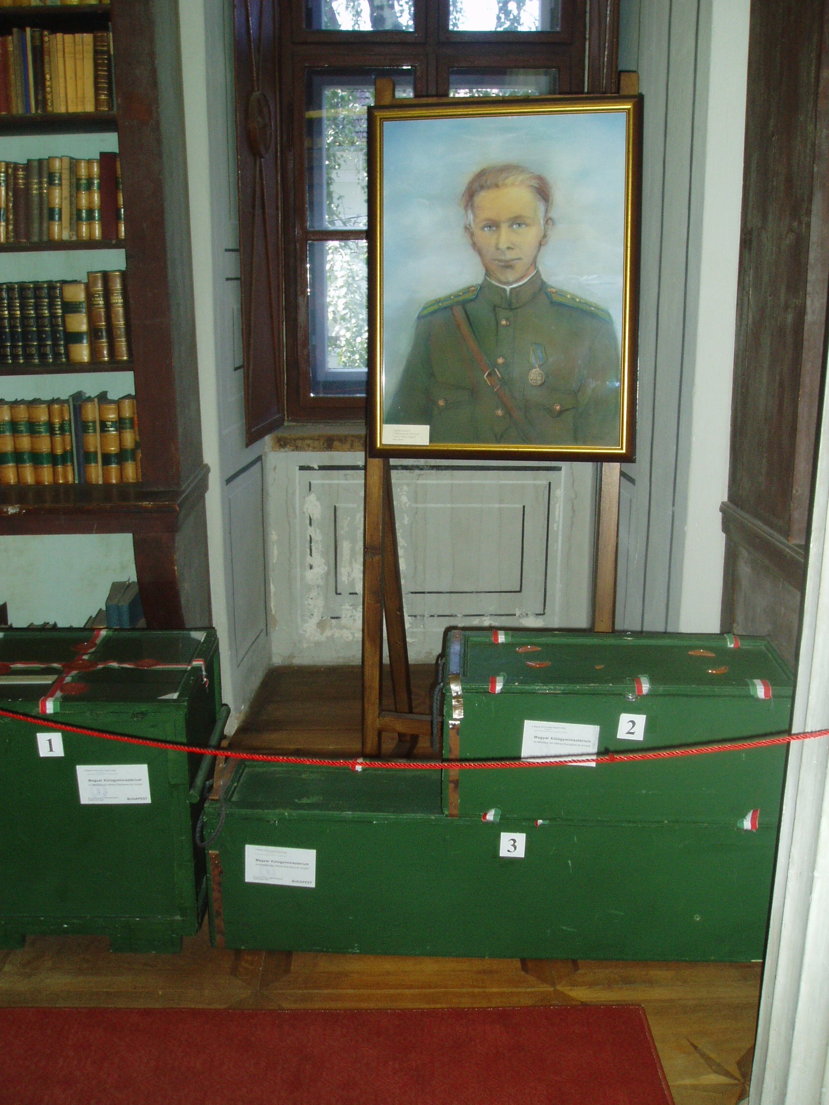 Nyilvános 990 | 1436 | Sárospatak, Rákóczi utca 1. Református Kollégium könyvtára | Az 1531-ben alapított Sárospataki Református Kollégium könyvtára évszázadok óta az ország egyik legértékesebb könyvgyűjteménye. A második világháború előestéjén, 1938-ban az állomány legbecsesebb részét Budapestre menekítették. Sajnos, nem lehetett előre látni, hogy a Sárospatakot elfoglaló szovjet csapatok megkímélték a kollégiumi könyvtárat, míg a Budapestre került kötetek a hadi események során eltűntek. Sorsukról sokáig semmit sem lehetett tudni, csak harminc év múlva derült ki, hogy a Nyizsnyij Novgorod-i Lenin Könyvtár egy részlegében őrzik őket. A rendszerváltás után tárgyalásokba lehetett bocsátkozni visszaadásukról, amelyre, sok vita után 2006. áprilisában kerülhetett sor. Az örömbe azonban némi üröm is vegyült, hiszen a szakemberek szerint még mintegy 150 kötet maradt orosz könyvtárakban vagy múzeumokban, másrészt pedig a tárolás fejében a magyar államnak több százezer dolláros térítést kellett fizetnie. A képen Jegorov szovjet városparancsnok portréja látható: ő volt az, aki 1945-ben megvédte a könyvtár helyben maradt anyagát. A portré alatt pedig azok a ládákat helyezték el, amelyekben 2006 tavaszán visszatérhetett végre az elrabolt könyvek nagy része. A fénykép 2007 augusztusában készült. Felh. irod.: Détsy Mihály: Sárospatak. Bp. Corvina, 1974 Fehér Katalin: Hazatértek a sárospataki könyvek. = Könyv és Nevelés 2006. 2. www.gradatio.hu/nagykonyvtar |