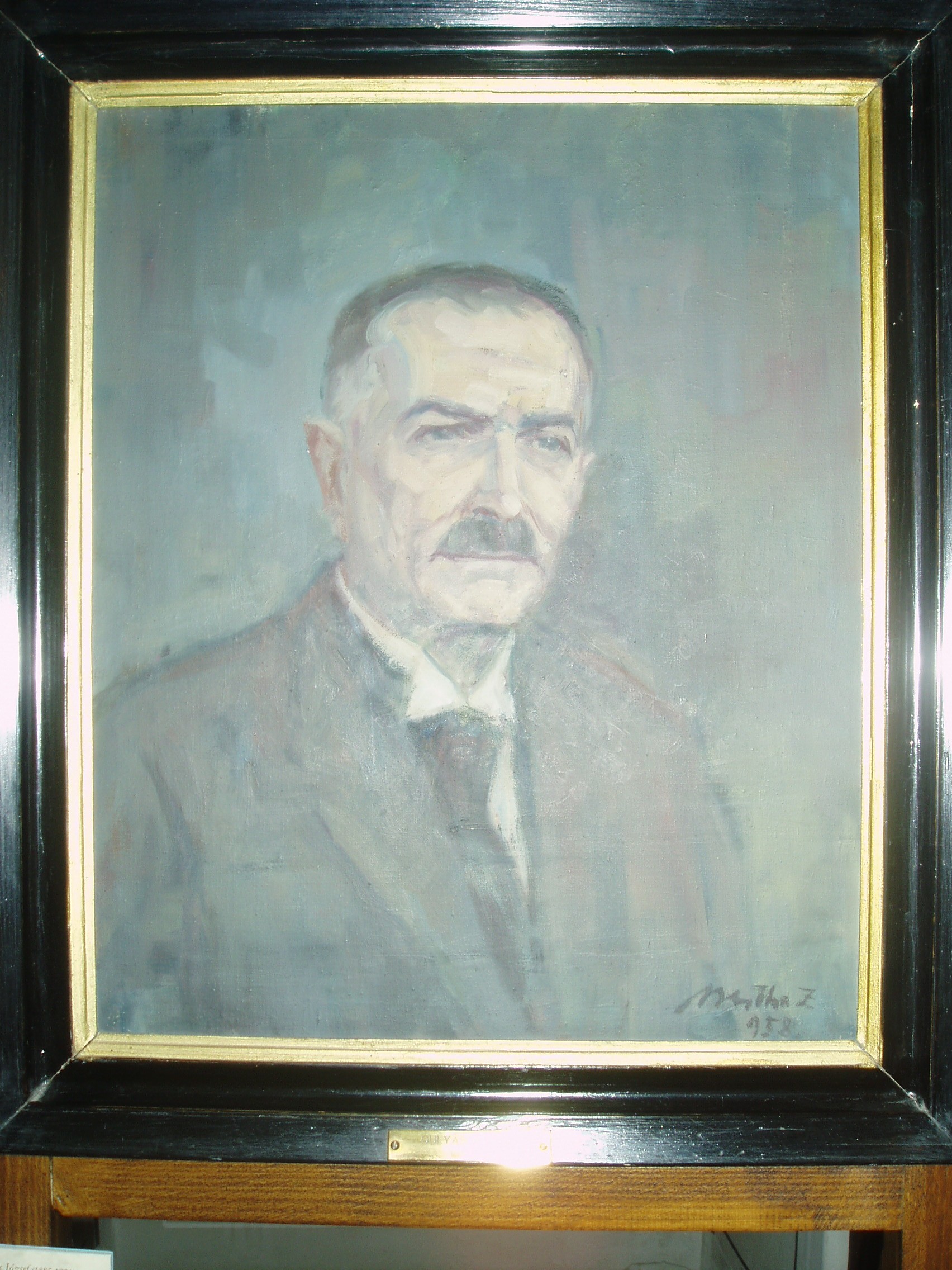 Nyilvános 952 | 1463 | Sárospatak, Rákóczi utca 1. Református Kollégium könyvtára | A képen Gulyás József (1885-1954) főkönyvtárnok portréja, Bertha Zoltán olajfestménye látható. Gulyás József 1928 és 1944 között volt a könyvtár igazgatója. Több tanulmányt készített a főiskola és a könyvtár történetéről. A fénykép 2007 augusztusában készült. Felh. irod.: www.gradatio.hu/nagykonyvtar |