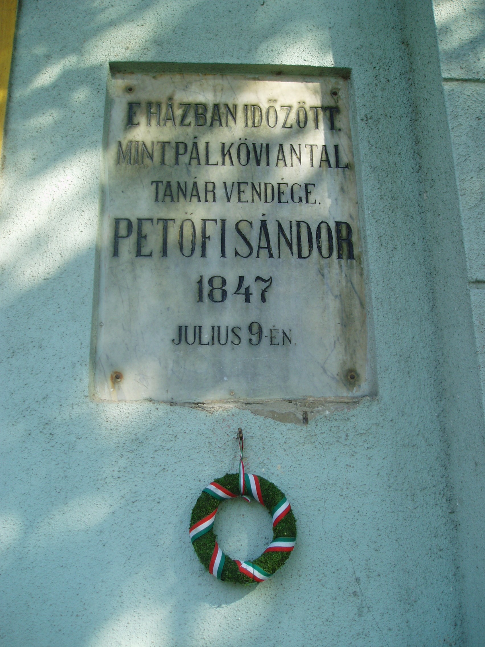 Nyilvános 952 | 1413 | Sárospatak, Rákóczi utca 17. | Itt lakott Pálkövi Antal kollégiumi tanár, akinek lakásán vendégeskedett 1847. július 9-én Petőfi Sándor. Petőfi erdélyi útja során látogatta meg Sárospatakot, Miskolcról jött a Hegyalján keresztül. Délután érkezett a városba s Pálkövi tanárnál szállt meg. Másnap Sátoraljaújhelyre ment meglátogatni barátját, Kazinczy Gábort, Kazinczy Ferenc unokaöccsét (lásd: Sátoraljaújhely, Dózsa Gy. u. 11.), útba ejtve Széphalmot (lásd: Széphalom, Kazinczy Mauzóleum) is. A költő Sárospatakról keltezte XI. Úti levelét. A fénykép 2007 augusztusában készült. Felh. irod.: Látnivalók Borsod-Abaúj-Zemplén megyében. Miskolc, Well-PRess, 1995 Erős Zoltán: Magyar irodalmi helynevek A-tól Z-ig. Bp. Kis-Lant Kiadó, 1995 |