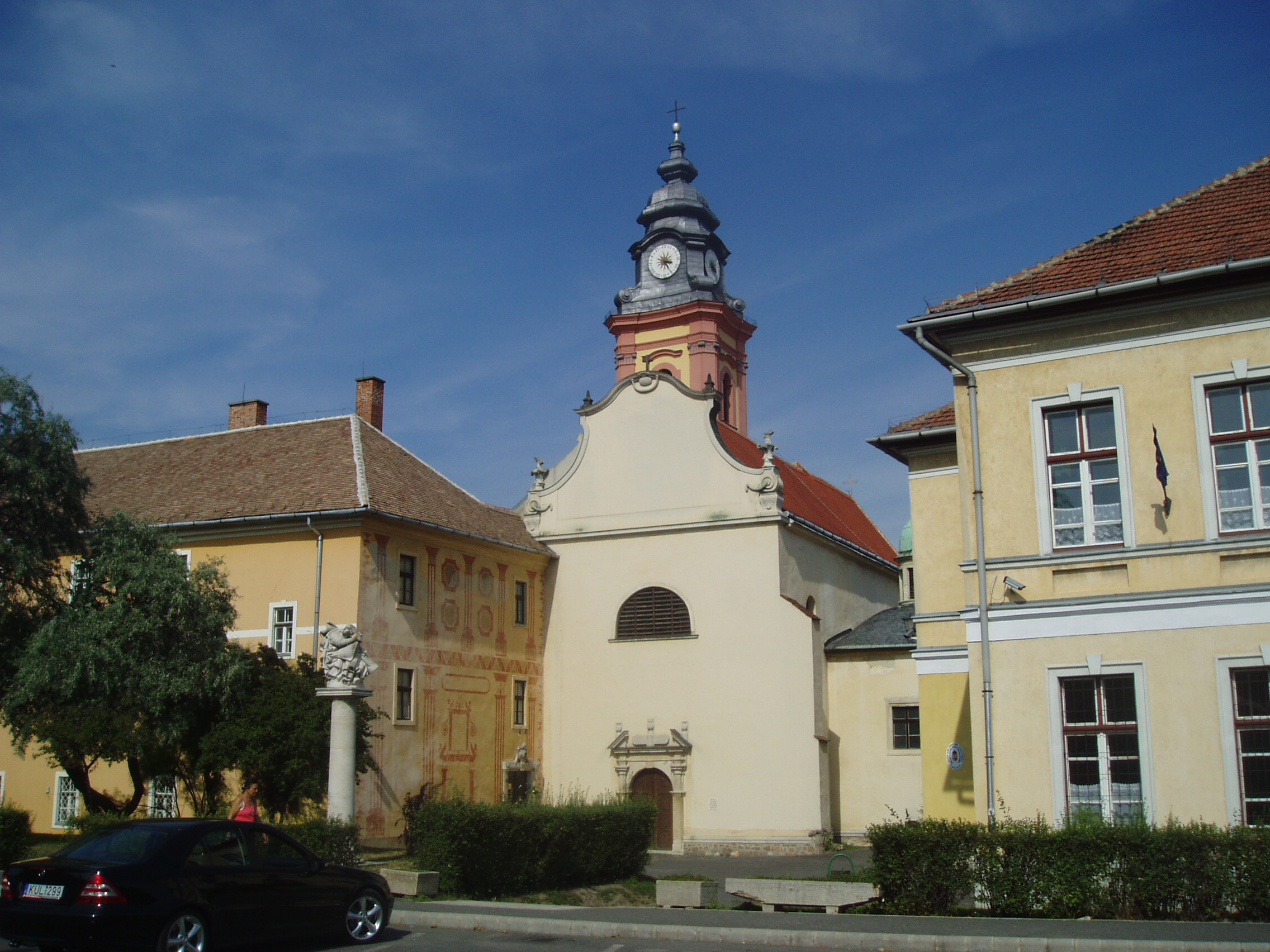 Nyilvános 955 | 1490 | Sátoraljaújhely, Deák Ferenc utca 10-12. Piarista templom, rendház és gimnázium | Sátoraljaújhely legértékesebb műemlék együttese a város legősibb részén, az ún. Barátszeren található. A településrész az egyetlen magyar alapítású szerzetesrendről, a pálosokról kapta nevét. A rend már a XIII. század második felében megkezdte itt kolostorának (a képen balról) építését. A templom eredete is a XIV. századra nyúlik vissza. Az épületegyüttest a pálos rend feloszlatása után, a XVIII. század végén a piaristák kapták meg. A templom mellett jobbról a Kossuth Lajos Gimnázium XIX. század végi épülete áll. A fénykép 2007 augusztusában készült. Felh. irod.: Látnivalók Borsod-Abaúj-Zemplén megyében. Miskolc, Well-PRess, 2003 www.satoraljaujhely.hu/nevezetessegek www.vendegvaro.hu |