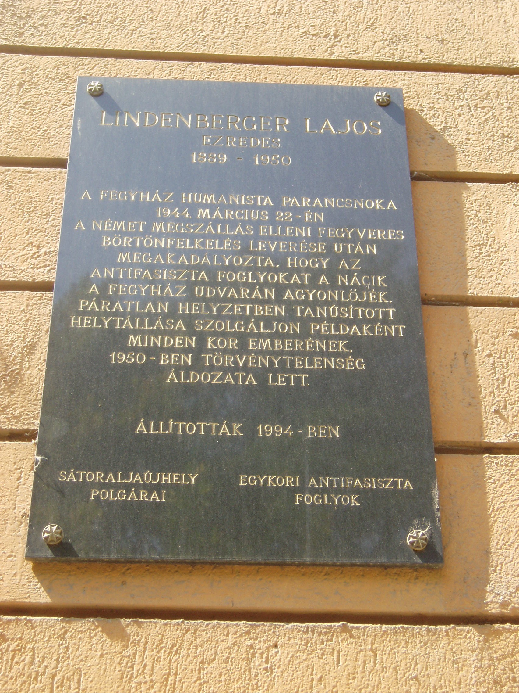 Nyilvános 1021 | 2055 | Sátoraljaújhely, Kazinczy utca 35. Sátoraljaújhelyi Fegyház és Börtön | Az utcai homlokzaton Lindenberger Lajos ezredes (1889-1950) emléktáblája olvasható. A fegyház humanista parancsnoka 1944. március 22-én a német megszállás elleni fegyveres börtönfelkelés leverése után megakadályozta, hogy az elfogott résztvevőket a nácik a fegyház udvarán agyonlőjék. Lindenbergert 1949-ben az Államvédelmi Hatóság „háborús bűntett” miatt a lakásából elhurcolva őrizetbe vette. A túlélésüket neki köszönhető korábbi politikai elítéltek mentő vallomásai és segítő erőfeszítései ellenére halálra ítélték. Vélhetően 1950 nyarán, – még az ítélet végrehajtása előtt – a fogva tartás körülményei és a kihallgatásokkal járó megpróbáltatások következtében elhunyt. A rendszerváltást követően halálos ítéletét felülvizsgálták és megsemmisítették. A fénykép 2007 augusztusában készült. Felh. irod.: Látnivalók Borsod-Abaúj-Zemplén megyében. Miskolc, Well-PRess, 2003 www.zhe.hu/Harcterkutatas/Satoraljaujhely/ujhelymain.html http://hu.wikipedia.org |