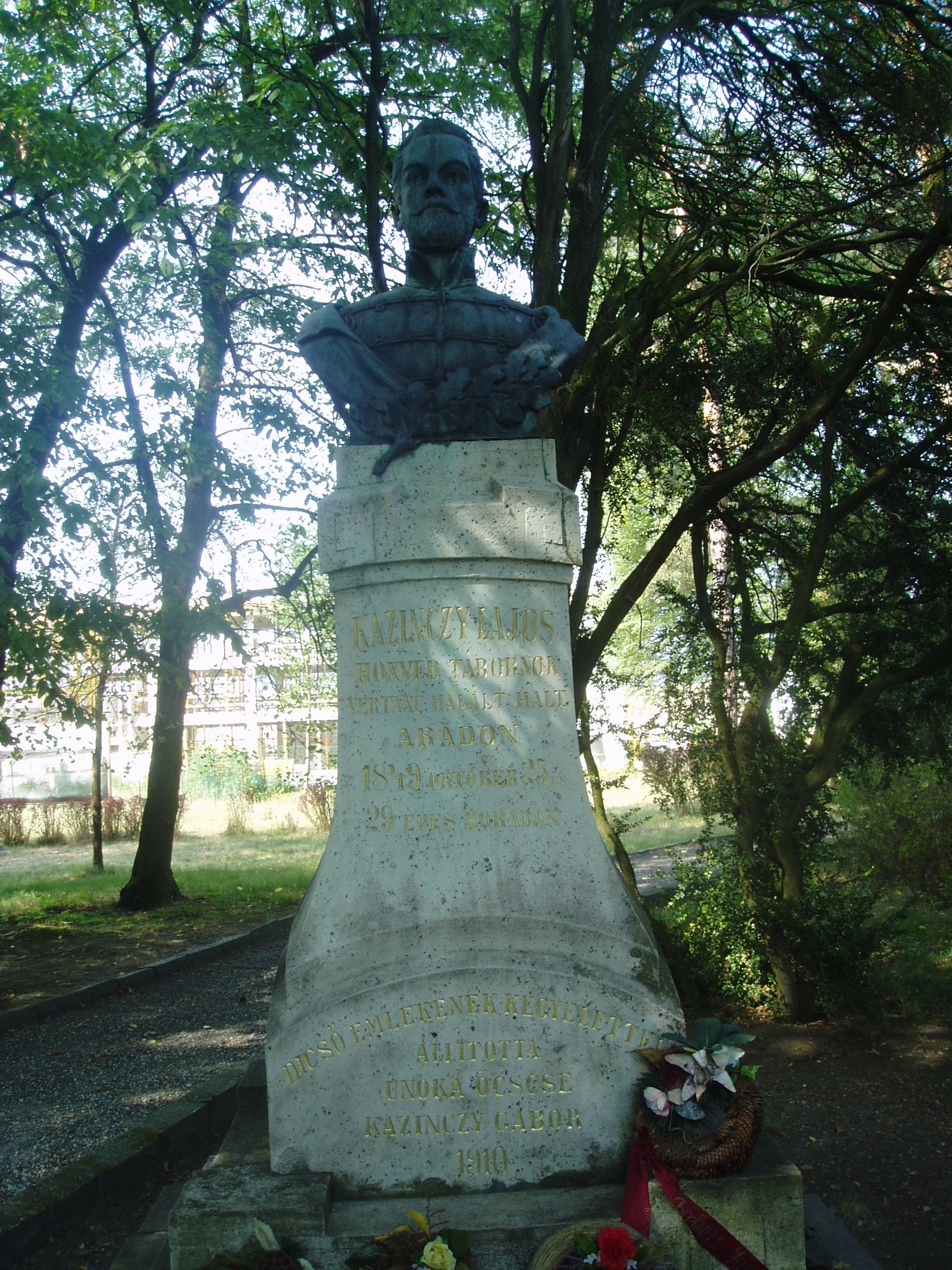 Nyilvános 978 | 1506 | Széphalom: A Kazinczy család sírkertje - Kazinczy Lajos szobra | A Kazinczy Emlékcsarnok parkja - Kazinczy Ferenc egykori kúriájának kertje - ma természetvédelmi terület. A mauzóleumból fasor vezet a Kazinczy család sírkertjébe. A kis temető helyét 1806-ban, első gyermeke, az egyéves korában elhunyt Iphigenia halálakor Kazinczy maga jelölte ki. Már akkor megírta barátainak, hogy felesége és ő is oda fognak temetkezni. Legkisebbik fiuk, Lajos, Aradon szenvedett vértanúhalált a honvédsereg ezredeseként. 1849. október 25-én, 29 éves korában végezték ki. Földi maradványait az aradi vársánc rejti. Szülei sírjának közelében felállított mellszobra idézi emlékét. A szobor másolata a sárospataki kollégium kertjében látható (lásd: Sárospatak, Iskolakert: Kazinczy Lajos). A fénykép 2007 augusztusában készült. Felh. irod.: Látnivalók Borsod-Abaúj-Zemplén megyében. Miskolc, Well-PRess, 2004 www.vendegvaro.hu Pávai Gyula: Kazinczy Lajos emléktáblája Aradon. = Széphalom. A Kazinczy Ferenc Társaság Évkönyve 13. kötet, 2003 |