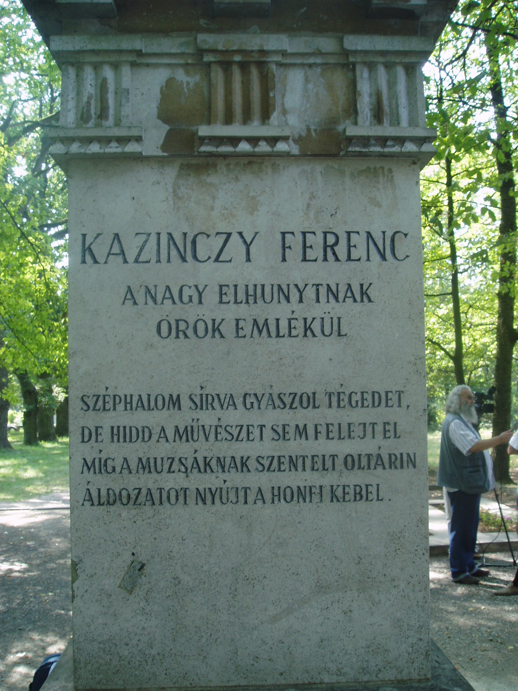 Nyilvános 1011 | 1501 | Széphalom: A Kazinczy család sírkertje - Kazinczy Ferenc sírja | A Kazinczy Emlékcsarnok parkja - Kazinczy Ferenc egykori kúriájának kertje - ma természetvédelmi terület. A mauzóleumból fasor vezet a Kazinczy család sírkertjébe. A sírkert helyét 1806-ban, első gyermeke, az egyéves korában elhunyt Iphigenia halálakor Kazinczy maga jelölte ki. Már akkor megírta barátainak, hogy felesége és ő is oda fognak temetkezni. Kazinczy Ferenc 1831. augusztus 22-én hunyt el széphalmi otthonában. Sírja már a reformkorban zarándokhely lett. Járt itt Petőfi Sándor is 1847. júliusában. Az emlékoszlop alatt nyugszik az író és felesége, az oszlop körül pedig négy gyermekük, két unokájuk, három dédunokájuk és az a szolgálójuk, aki Kazinczyval együtt raboskodott Munkács várában. Legkisebbik fiuk, Lajos, Aradon szenvedett vértanúhalált a honvédsereg ezredeseként. A fénykép 2007 augusztusában készült. Felh. irod.: Látnivalók Borsod-Abaúj-Zemplén megyében. Miskolc, Well-PRess, 2004 www.vendegvaro.hu Busa Margit: Adalékok a Kazinczy család történetéhez. = Széphalom. A Kazinczy Ferenc Társaság Évkönyve 12. kötet, 2002 |