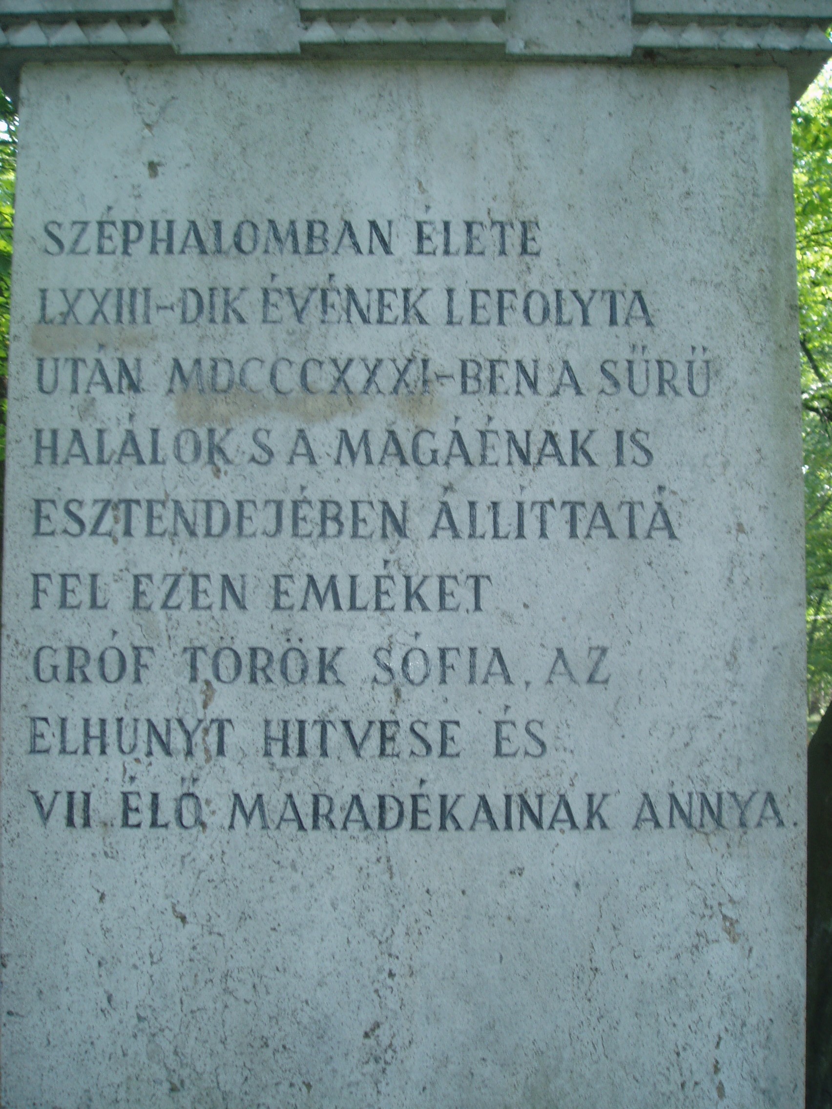 Nyilvános 967 | 1537 | Széphalom: A Kazinczy család sírkertje - Kazinczy Ferenc sírja | A Kazinczy Emlékcsarnok parkja - Kazinczy Ferenc egykori kúriájának kertje - ma természetvédelmi terület. A mauzóleumból fasor vezet a Kazinczy család sírkertjébe. A sírkert helyét 1806-ban, első gyermeke, az egyéves korában elhunyt Iphigenia halálakor Kazinczy maga jelölte ki. Már akkor megírta barátainak, hogy felesége és ő is oda fognak temetkezni. Kazinczy Ferenc 1831. augusztus 22-én hunyt el széphalmi otthonában. Sírja már a reformkorban zarándokhely lett. Járt itt Petőfi Sándor is 1847. júliusában. Az emlékoszlop alatt nyugszik az író és felesége, az oszlop körül pedig négy gyermekük, két unokájuk, három dédunokájuk és az a szolgálójuk, aki Kazinczyval együtt raboskodott Munkács várában. Legkisebbik fiuk, Lajos, Aradon szenvedett vértanúhalált a honvédsereg ezredeseként. A fénykép 2007 augusztusában készült. Felh. irod.: Látnivalók Borsod-Abaúj-Zemplén megyében. Miskolc, Well-PRess, 2004 www.vendegvaro.hu Busa Margit: Adalékok a Kazinczy család történetéhez. = Széphalom. A Kazinczy Ferenc Társaság Évkönyve 12. kötet, 2002 |