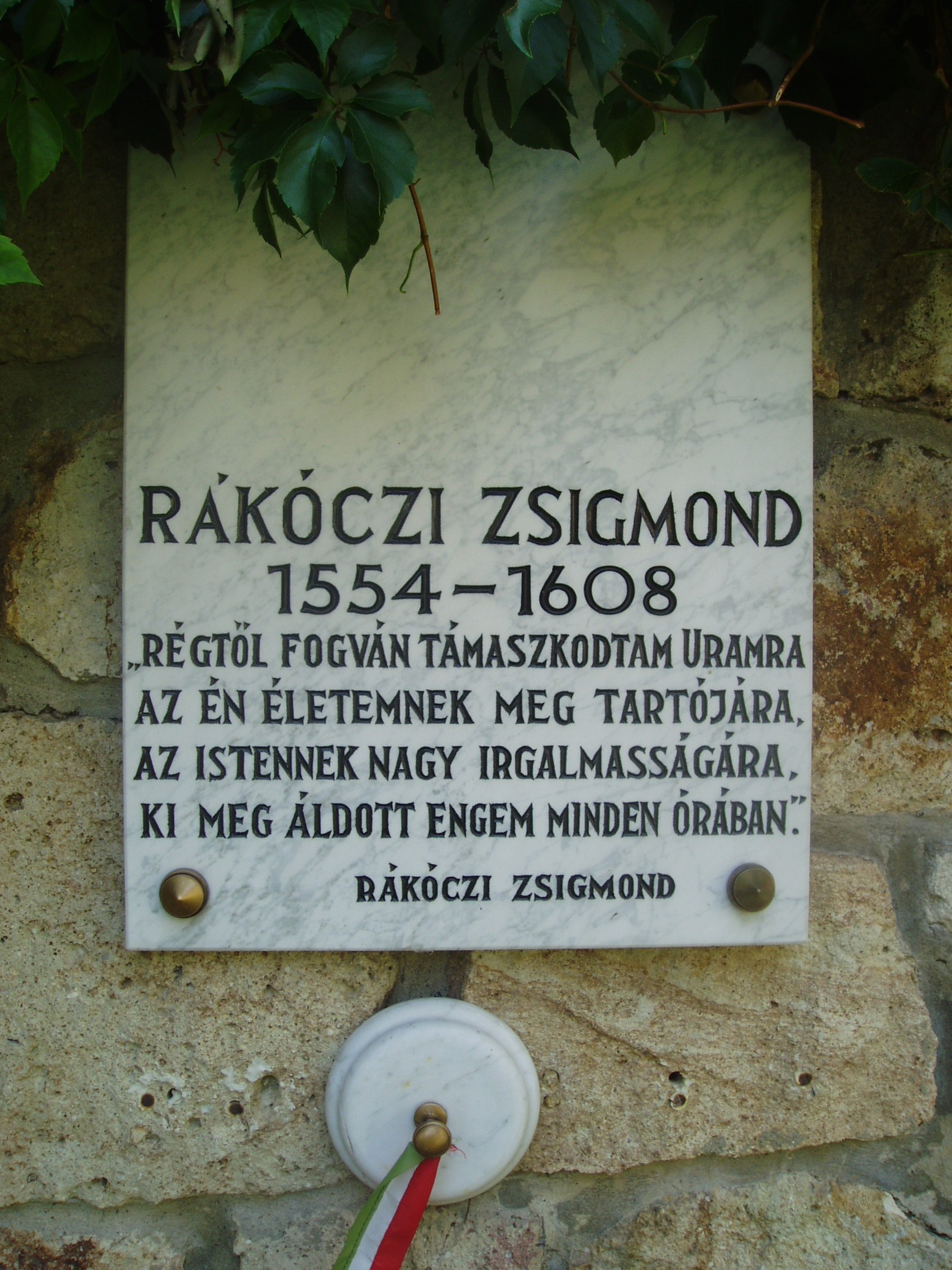 Nyilvános 961 | 1431 | Szerencs, Huszárvár utca 11. Zempléni Panteon: Rákóczi Zsigmond (1544-1606) emléktáblája | A szerencsi Rákóczi várnál 1996-ban, a honfoglalás ezredeik évfordulója alkalmából állították fel a jeles zempléni személyiségek panteonját. Rákóczi Zsigmond volt a Rákóczi család vagyonának és tekintélynek megalapozója. Korának legnagyobb politikai karrierjét futotta be. 1544-ben egy kisbirtokosi családba született, de ügyes pénzügyi manővereinek és jó házasságainak köszönhetően nagy kiterjedésű és jelentős birtokok, várak, kastélyok ura lett, s életének utolsó időszakában Erdély fejedelmének választották. A tokajiból kiszakított szerencsi uradalom zálogbirtokát 1583-ban kapta meg, s ez 1603-ban a család örökös tulajdona lett. Itt építette meg Zsigmond a Rákócziak első várerődítményét. Itt születtek fiai: György, (a későbbi erdélyi fejedelem), Zsigmond és Pál. Több évtizeden át, (egészen 1616-ig) Szerencs volt a Rákóczi-birtokok központja. Végső akarata szerint ide temették el az első Rákóczit, aki Erdély fejedelmi címét is viselte (lásd: Szerencs, Kossuth tér 4.). Az õ anyagi támogatásával jelent meg Károli Gáspár fordításában a magyar biblia. A fénykép 2007 augusztusában készült. Felh. irod.: Fazekas Lászlóné: Szerencs. Szerencs, Szerencsi Hírek Szerkesztősége, 1997 www.vendegvaro.hu Látnivalók Borsod-Abaúj-Zemplén megyében. Miskolc, Well-PRess, 2004 www.hermuz.hu/aktual/archiv/kiallarc3.htm |