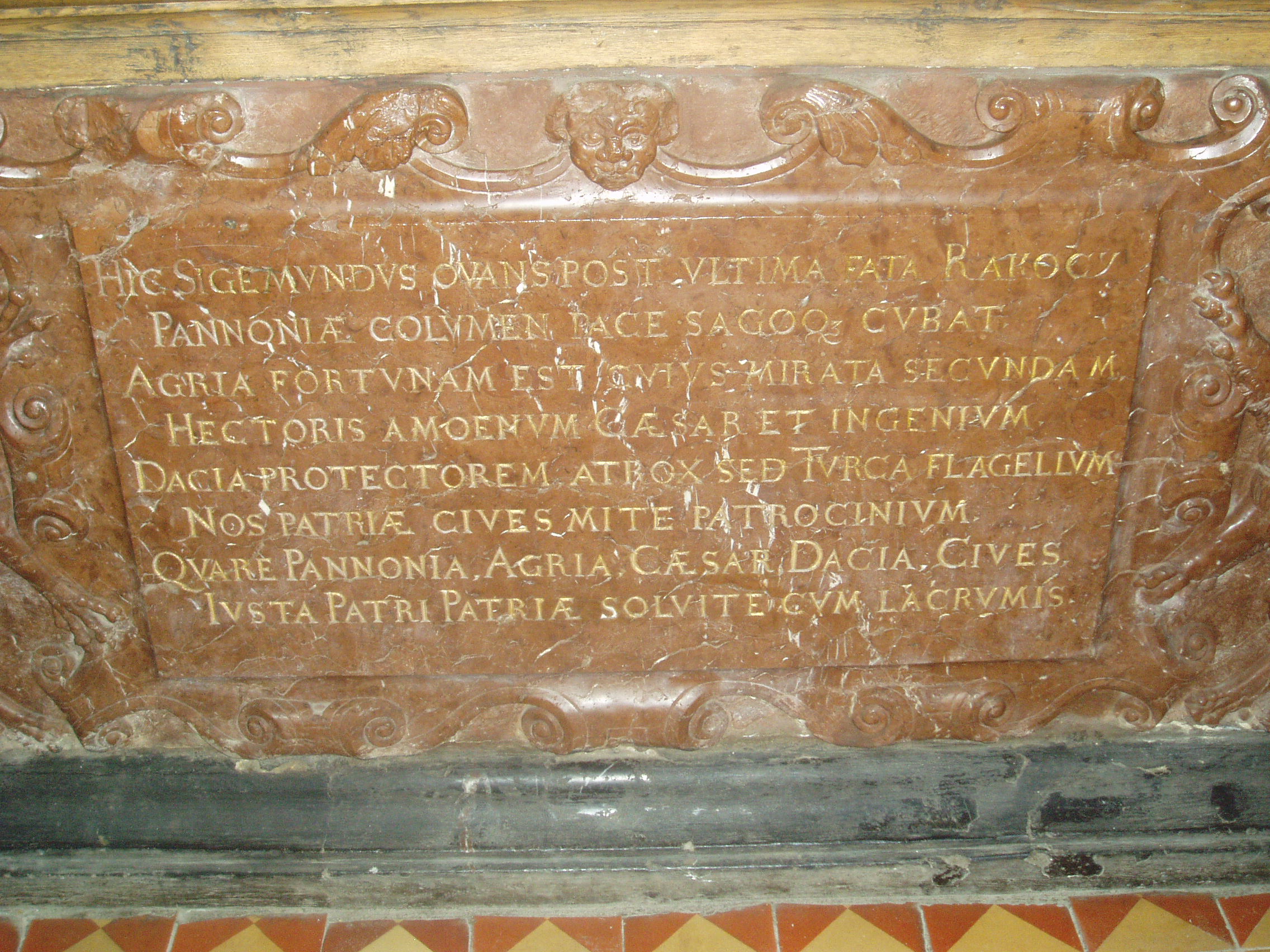 Nyilvános 952 | 1743 | Szerencs, Kossuth tér 4. Református templom - Rákóczi Zsigmond tumbája | Szerencs legrégibb temploma a XIII. században épült eredetileg román stílusban. Az épületet 1480-ban átalakították, ekkor készült a középen álló gótikus torony. Az épületet gótikus támpillérek fogják körül. A templomot 1595-ben adományozta Rákóczi Zsigmond református hittársainak, az ő támogatásával jelentős átalakításokat is végeztek rajta. A templom nemcsak építészetileg nevezetes, hanem jelentős történelmi emlékhely is. 1605-ben az e falak között tartott országgyűlésen választották Bocskai Istvánt Magyarország fejedelmévé. A templom hajójában található Rákóczi Zsigmond (1544-1608) címerrel ékesített vörös márány szarkofágja (tumbája), amelyet 1618-ban a fejedelem három fia, György (1630-tól erdélyi fejedelem), Zsigmond és Pál készíttetett. A síremlék tetején levő latin szöveg fordítása: "Tekintetes és nagyságos felsővadászi Rákóczi Zsigmond, Borsod vármegye főispánja, a magyar király néhai lefőbb tanácsosa, először Szendrő, azután pedig Eger kapitánya és Erdély fejedelme, a magyarországi részek ura és a székelyek ispánja számára állíttatott jeles címer, akinek erénye gyakrabban híresedett el Magyarországon legnagyobb örvendezések közepette. Aki meghalt az ő kegyeletes szülőhelyén, Felsővadászon az 1608. évi december hó 5-én, midőn innen-onnan 64 évig élt. Három gyászoló fia: Rákóczi György , Zsigmond és Pál az ő legkedvesebb édesatyjuknak, aki irántuk és a haza iránt jól érdemesült." A szarkofág nyugati oldalán a következő felirat olvasható: "Tebenned reméltem Uram, hogy nem leszek porrá mindörökké! " A déli oldalon Miskolczi Csulyak István prédikátor verse őrzi Rákóczi Zsigmond emlékét (a képen ez a felirat látható): "Itt nyugszik végső lehelete után a békében és háborúban győzedelmes Rákóczi zsigmond, Magyarország oszlopa, akinek Eger csodálta szerencséjét, a császár fővezérének kies lángelméjét is, Erdély oltalmazóját, a kegyetlen török pedig ostorát, mi honfiak az ő kegyes atyai indulatát. Azért Magyarország, Eger, császár, honfiak, érdemihez illően fizessetek könnyeitekkel a haza atyjának." A síremlék alatt egy deszkaajtó felnyitása után lehet lejutni a kriptába. Ott található a fejedelem földi maradványait őrző urna, amelyet 1849-ben kapott adományul a város a X. zászlóalj tisztikarától. Bár 1644-ben, amikor Esterházy Miklós nádorispán csapatai megrohanták és kifosztották Szerencset, meggyalázták a fejedelem síremlékét is, Rákóczi Zsigmond koponyája megmaradt, s ma a kriptában egy kőurnában őrzik. Bizonyítéknak a koponyán található gyógyult fejsérüléseket tekintik, amelyeket az itt eltemetett személyek közül egyedül a fejedelem kaphatott. 1855. október 19-én járt a templomban, zempléni kirándulásuk alatt Arany János és Tompa Mihály. Arany a következőket írta levélben egy barátjának: "Szerencsen egy Rákóczi korabeli templomban láttuk Rákóczi Zsigmond fejedelem czímeres és feliratos márványravatalát.” A fénykép 2007 augusztusában készült. Felh. irod.: Tájékoztató feliratok a templomban www.szerencs.hu http://tokaj-turizmus.wplanet.hu/irodalmiut |