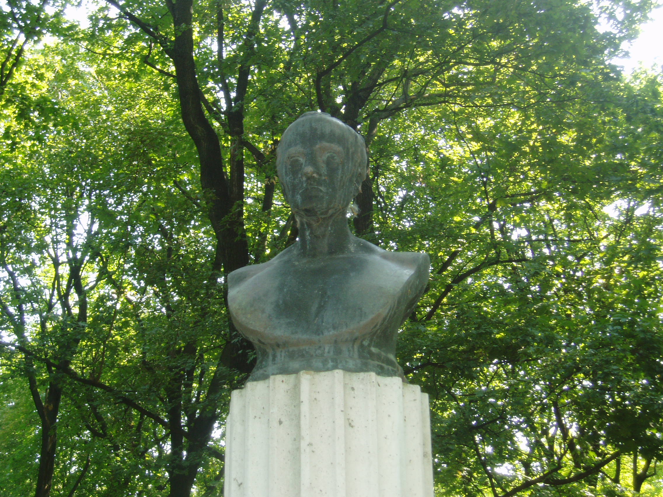 Nyilvános 1051 | 1731 | Sárospatak, Iskolakert: Kazinczy Ferenc szobra | A Református Kollégium (lásd: Sárospatak, Rákóczi u. 1.) bejáratával szemben találjuk az Iskolakertnek nevezett parkot. Az 1980-as években természetvédelmi területté nyilvánított Iskolakert sajátos nemzeti érték, mely egyedülálló az országban. Sétányai mentén Patakhoz kötődő jeles személyiségek szobrai állnak. Kazinczy Ferenc bronz mellszobrát, amelyet Maugsch Gyula készített, az Iskolakert díszterén helyezték el magas talapzaton. 1931. szeptember 30.-án avatták fel, állíttatta Kazinczy Gábor, a Pataki Diákok Országos Szövetségének elnöke. A szobor márvány párja a Széphalmi Múzeumban található. Kazinczy Ferenc 1769 szeptemberétől 1777-ig tanult a református kollégiumban. Később Széphalomról (lásd: Széphalom, Kazinczy Mauzóleum) is gyakran átrándult Patakra. Kollégiumi éveiről részletesen írt "Pályám emlékezete" című emlékiratában. 1811-ben Sárospatakon látott napvilágot a nyelvújítási harcot elindító "Tövisek és virágok" című kötete. A fénykép 2007 augusztusában készült. Felh. irod.: Látnivalók Borsod-Abaúj-Zemplén megyében. Miskolc, Well-PRess, 1995 www.sarospatak.hu/nevezetessegek Erős Zoltán: Magyar irodalmi helynevek A-tól Z-ig. Bp. Kis-Lant Kiadó, 1995 |