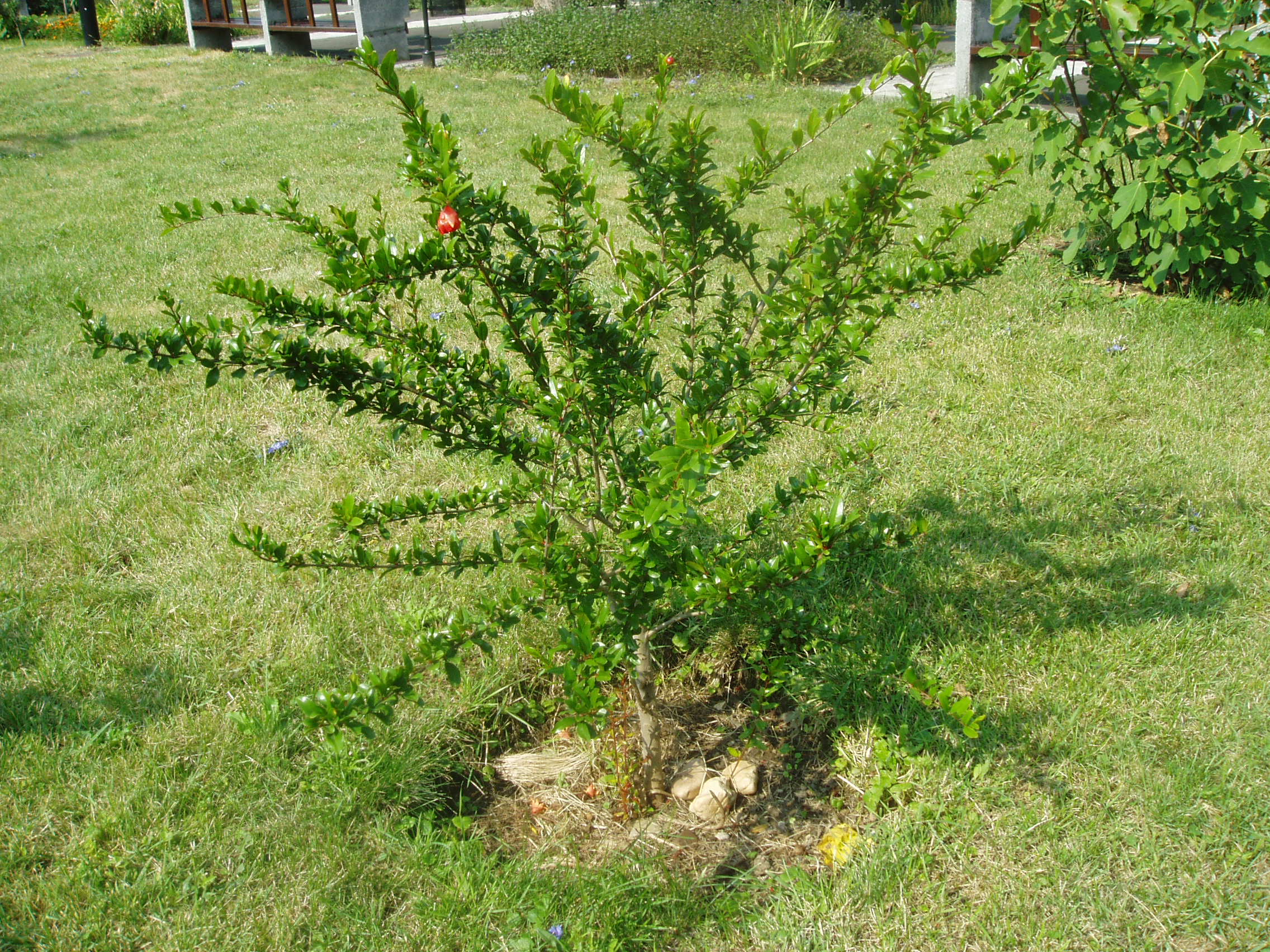 Nyilvános 970 | 1467 | Sárospatak, Rákóczi utca 1. Református Kollégium | A Kollégium udvarán, a Berna-sor előtt alakították ki a Bibliai kertet. Mintegy ötven féle, a Bibliában említett növény található itt. Az eligazodást alaprajz és a növények jegyzéke segíti. A képen egy kis gránátalmafa látható. A fénykép 2007 augusztusában készült. |