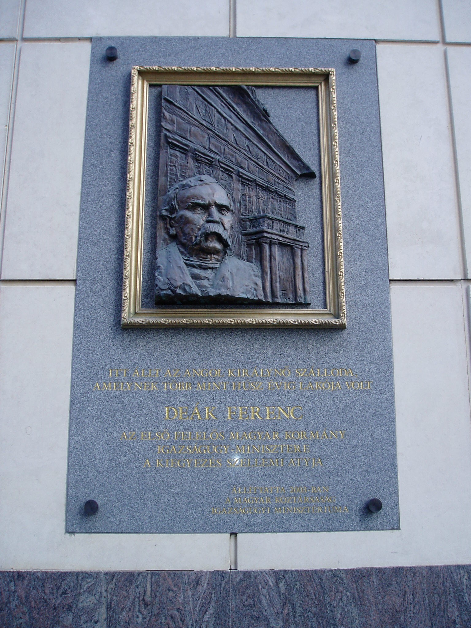 Nyilvános 1078 | 1670 | Budapest V. Deák Ferenc utca 1. | A mai Deák Ferenc utca 1. - Türr István utca 8. - Apáczai Csere János utca 9. számú épületek által határolt területen állt Kemnitzer János szerencsejátékból meggazdagodott tímármester 1792-ben épült kétemeletes monumentális lakóháza. Ennek földszintjén működött a Kemnitzer-, vagy másik nevén Márványos-kávéház, amelynek - a korabeli leírások szerint - nem akadt párja Európában. Az 1838-as nagy pesti árvíz azonban teljesen elöntötte és tönkretette az épületet, de erős alapfalainak felhasználásával újjáépítették, és új tulajdonosa szállodává alakíttatta. 1839-ben már meg is nyílt, s az akkoriban megkoronázott Viktóriáról nevezték el Angol Királynő szállodának. Az új szálloda is európai hírességgé vált vörösmárvány lépcsőivel, fehér, aranyozott oszlopaival és mahagónifával borított falaival. 1849-ben azonban ismét nagy csapás érte: Pest bombázásakor a környékbeli épületekkel együtt súlyosan megrongálódott. 1850-ben Hild József építette újjá, s ismét régi fényében működött. "Fejedelmek lakóhelyének" nevezték, mert lakott benne királynő, császár, sah, cár, trónörökös. A magyar történelembe azonban azzal írta be a nevét, hogy tizenöt éven át, majdnem haláláig itt élt Deák Ferenc, s itt tárgyalt a kiegyezés előkészítése idején a bécsi udvar megbízottaival. Az Angol Királynő az 1900-as évek elejétől kezdte elveszíteni népszerűségét, amikor elvette Dunára nyíló panorámáját és felülmúlta kényelmét az eléje épített luxushotelek sora. 1916-ban megszűnt, épületét, amelyben ezután a Pénzintézeti Központ működött, az 1940-es években lebontották. A fénykép 2005 májusában készült. Felh. irod.: Konrádyné Gálos Magda: Pest-budai szállók emlékeiből 2. = Budapest 1974. 9. Gundel Imre -Harmath Judit: A vendéglátás emlékei. Bp. Közgazdasági és Jogi Kiadó, 1979 |